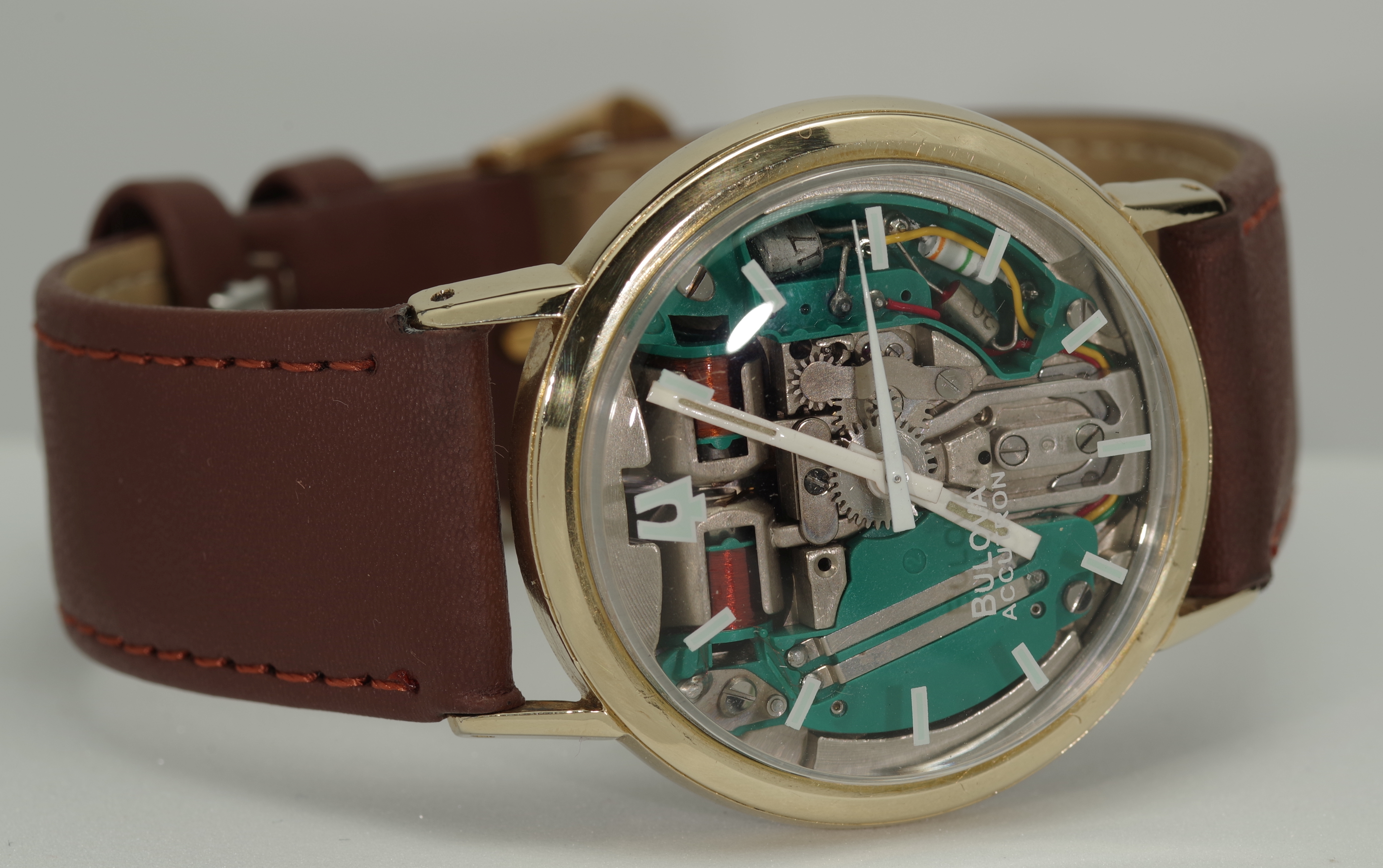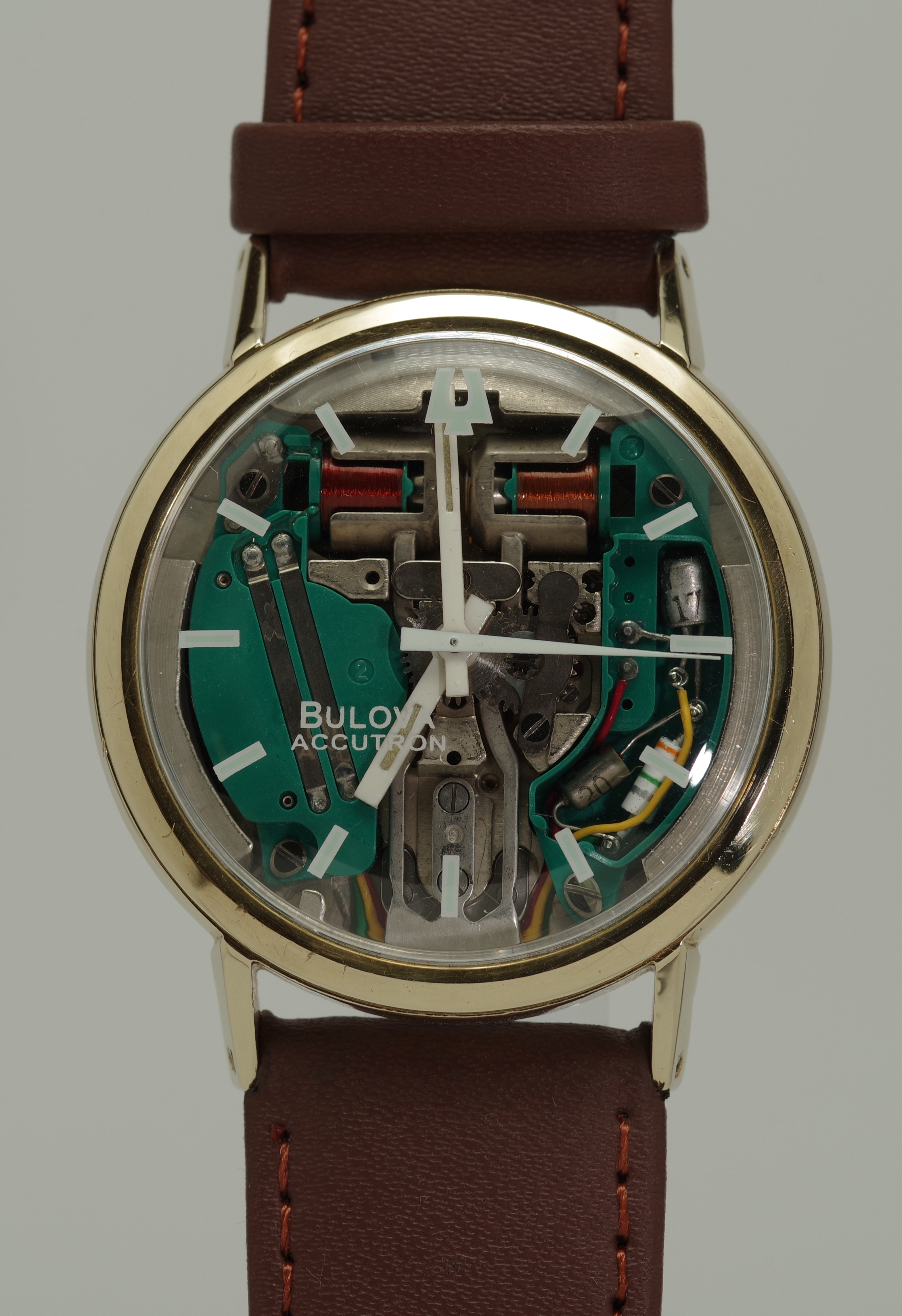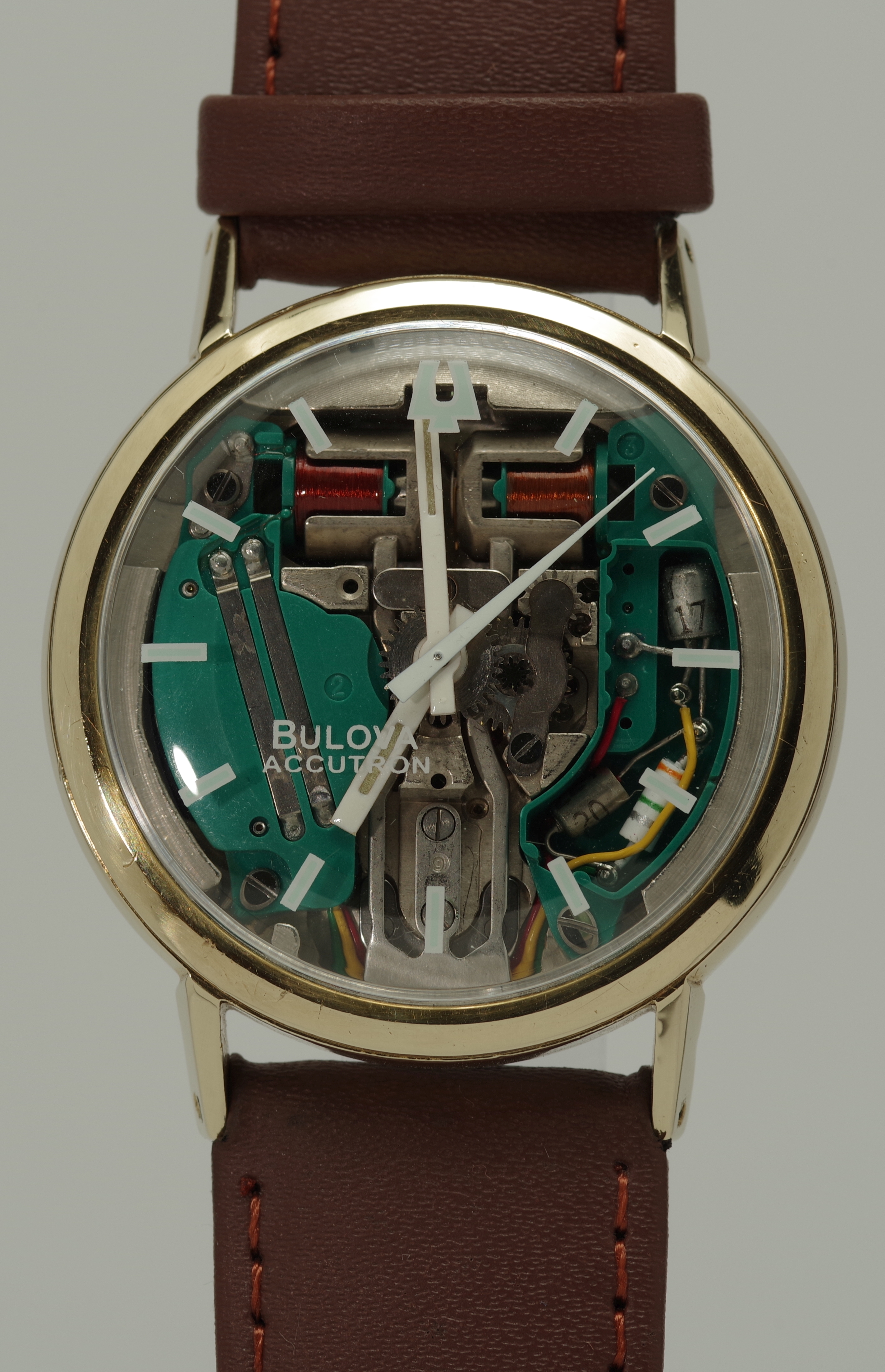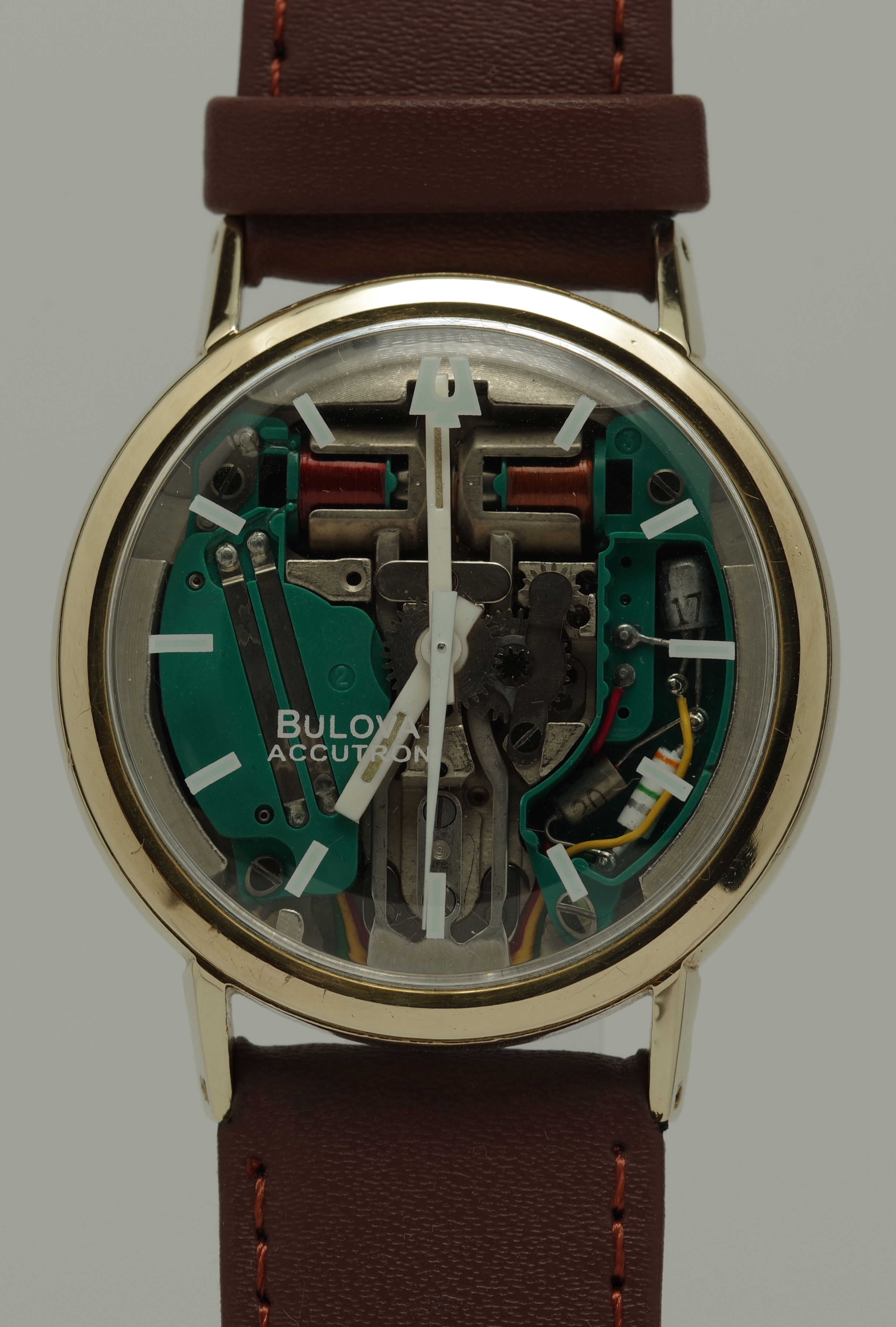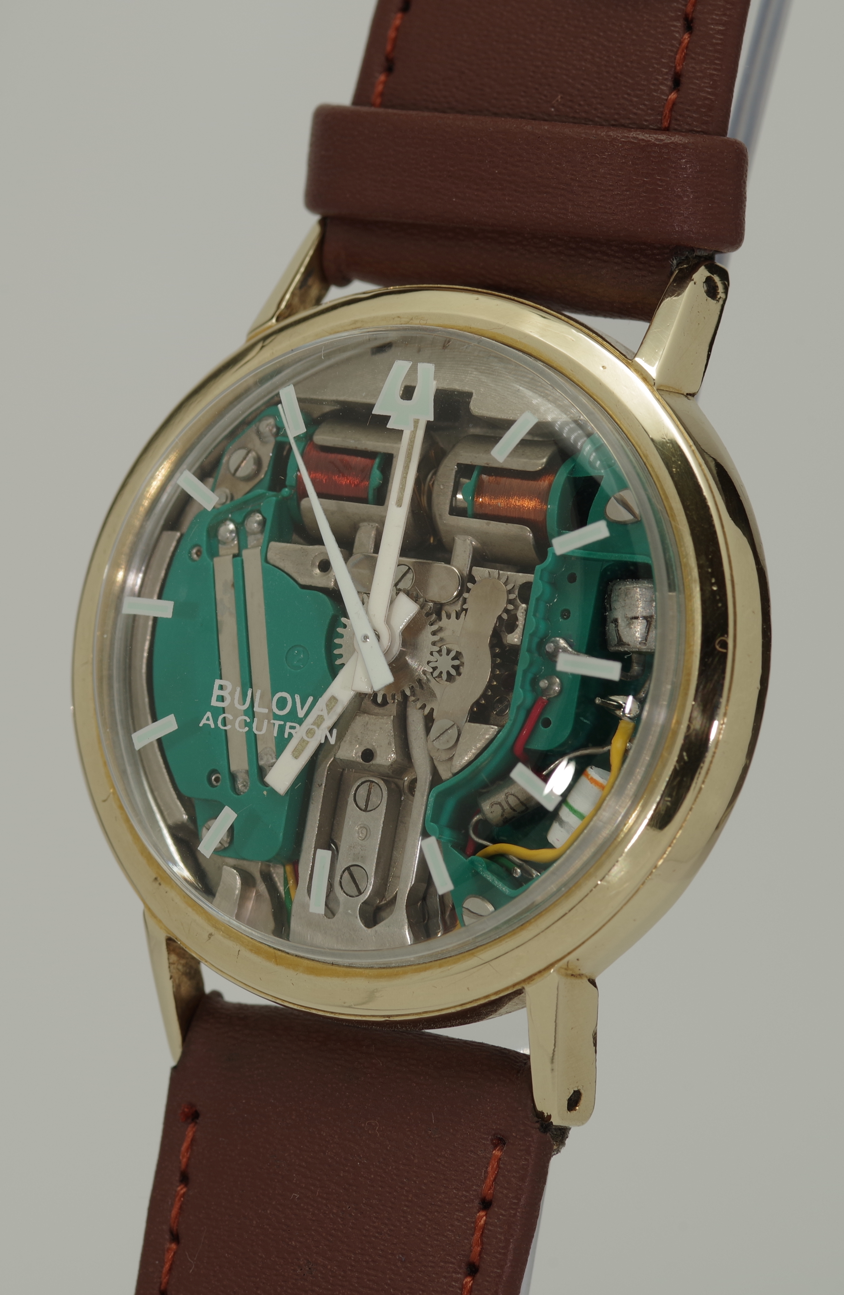 1960: Einführung der „Accutron“, der ersten vollelektronischen Armbanduhr mit Stimmgabeltechnologie.