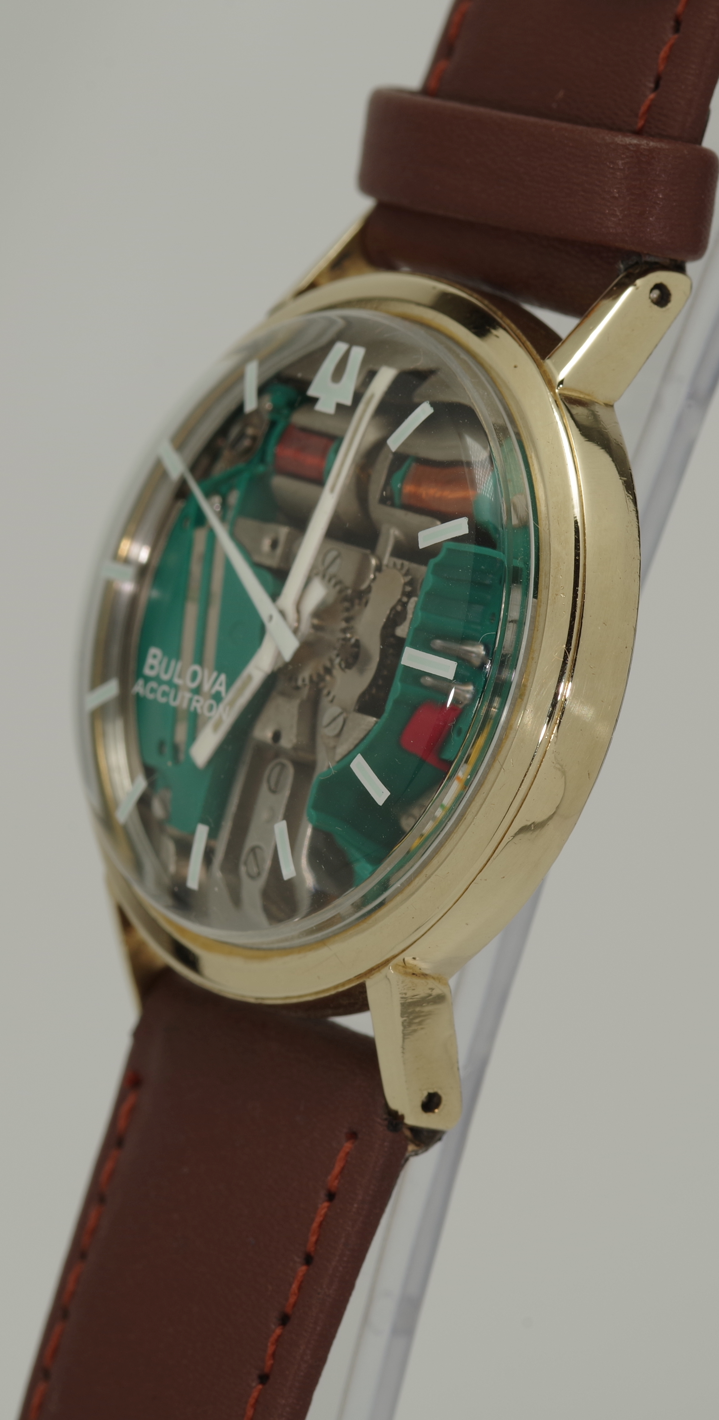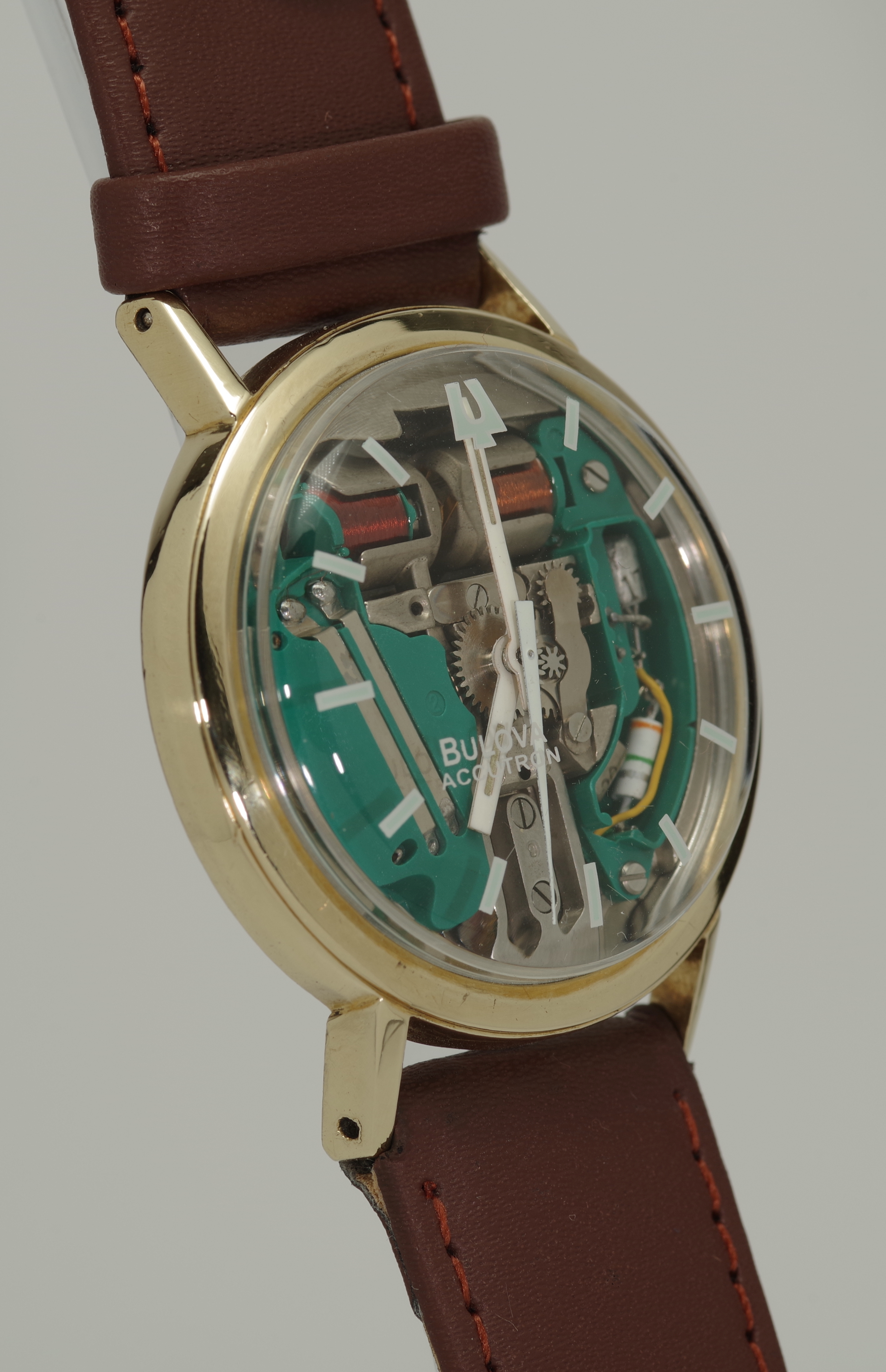 Die Bulova Accutron Uhrwerke wurden im Zeitraum von 1960 bis ins Jahr 1977 produziert. Diese werden mittels einer Stimmgabel bei einer Frequenz von 360 Hz angetrieben. Dieser Ton ist als Summen hörbar, wenn man sich die Uhr ans Ohr hält. Da die Stimmgabel das Uhrwerk direkt antreibt, schwebt der Sekundenzeiger gleichmäßig und in magisch einzigartiger Bewegung über das Zifferblatt. Für die damalige Zeit wurden mit den Bulova Accutron Uhren eine bis dato unbekannte Ganggenauigkeit erreicht. Die aufkommenden Quartz-Uhren haben jedoch auch dieser faszinierend aufwendigen Technik ein Ende bereitet.