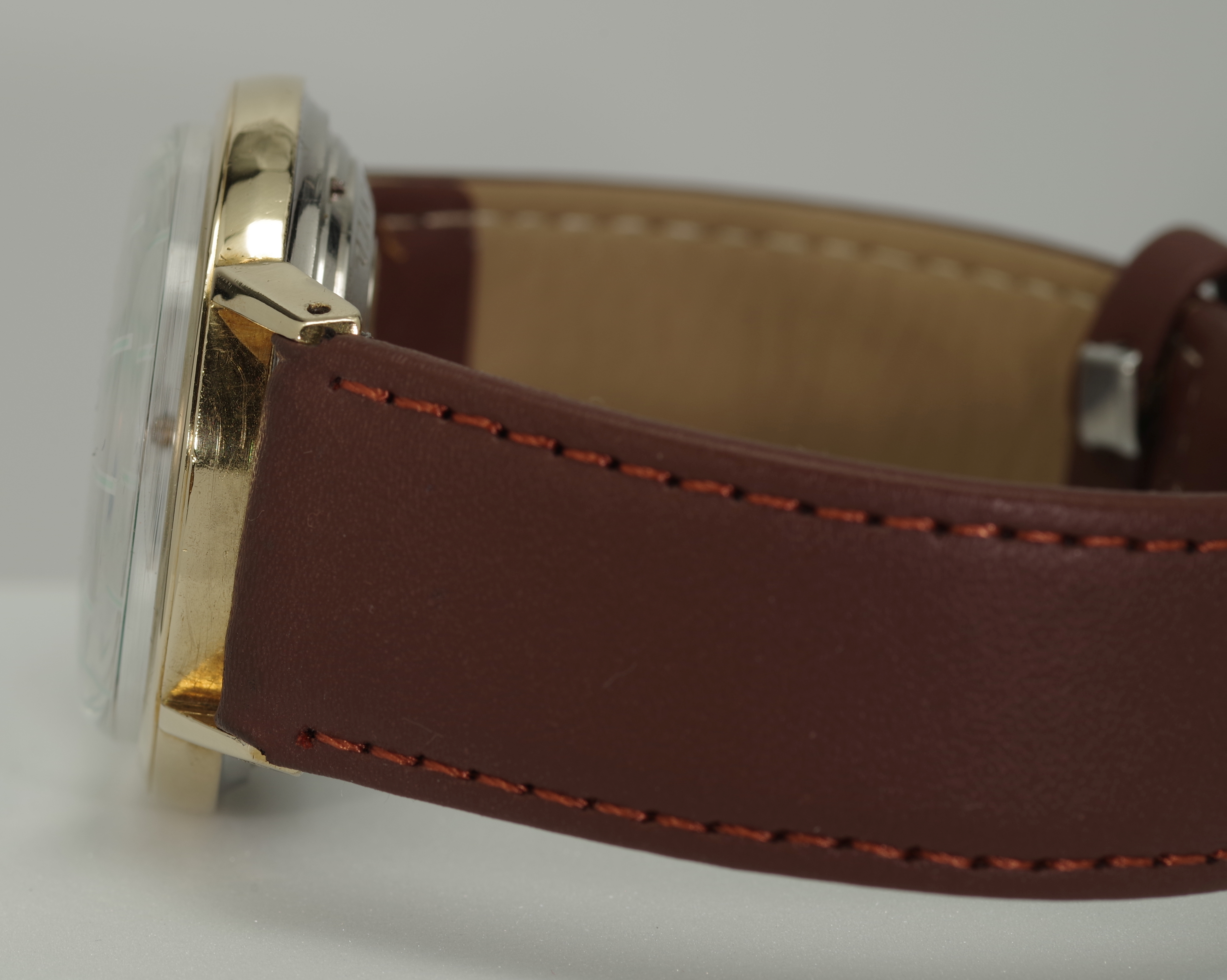 Die Uhr wurde vor einigen Jahren gewartet und befindet sich seitdem im Lager. Sie wurde jüngst gereinigt sowie mit einer neuen Batterie getestet. Sie funktioniert technisch einwandfrei und hält die Zeit perfekt.