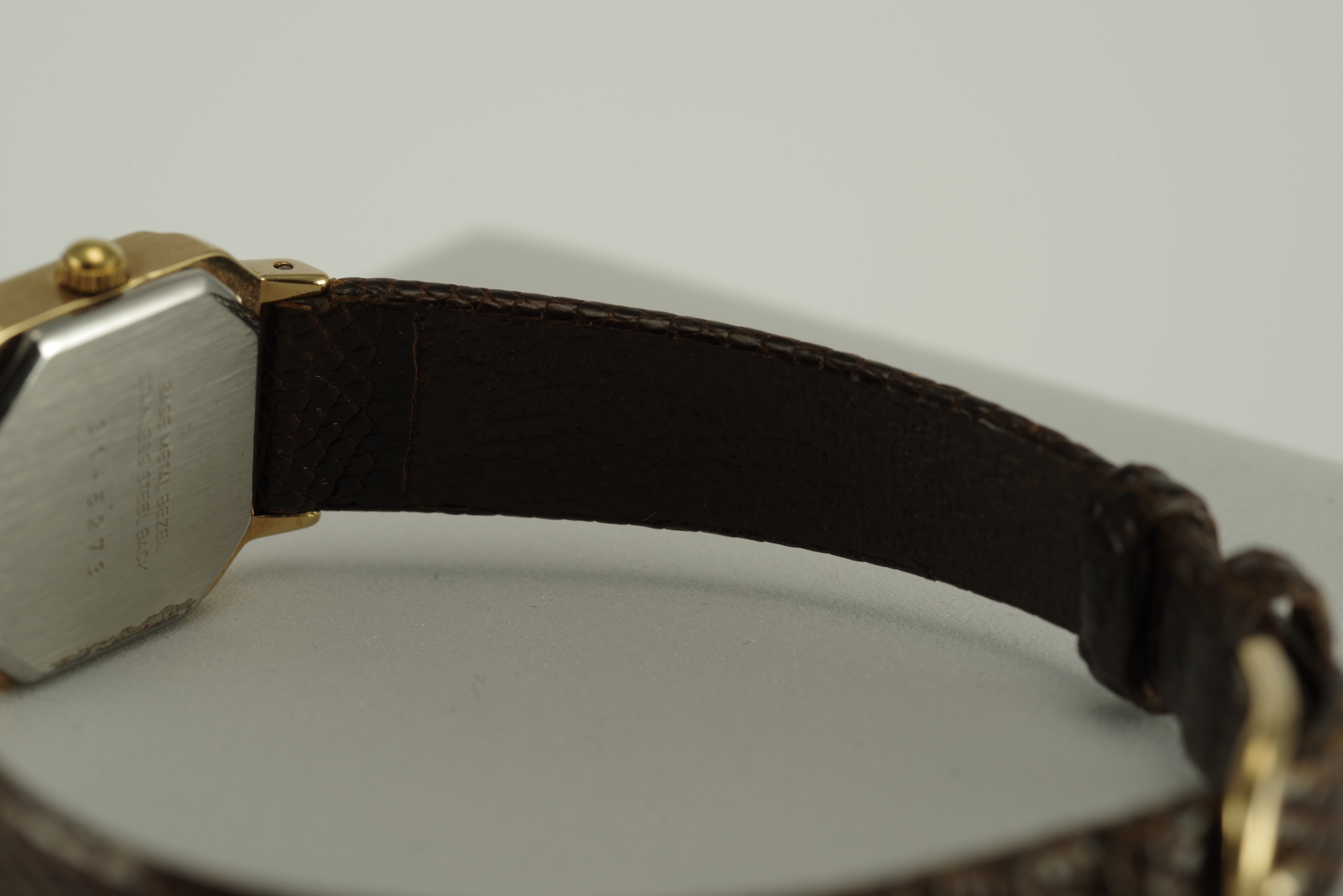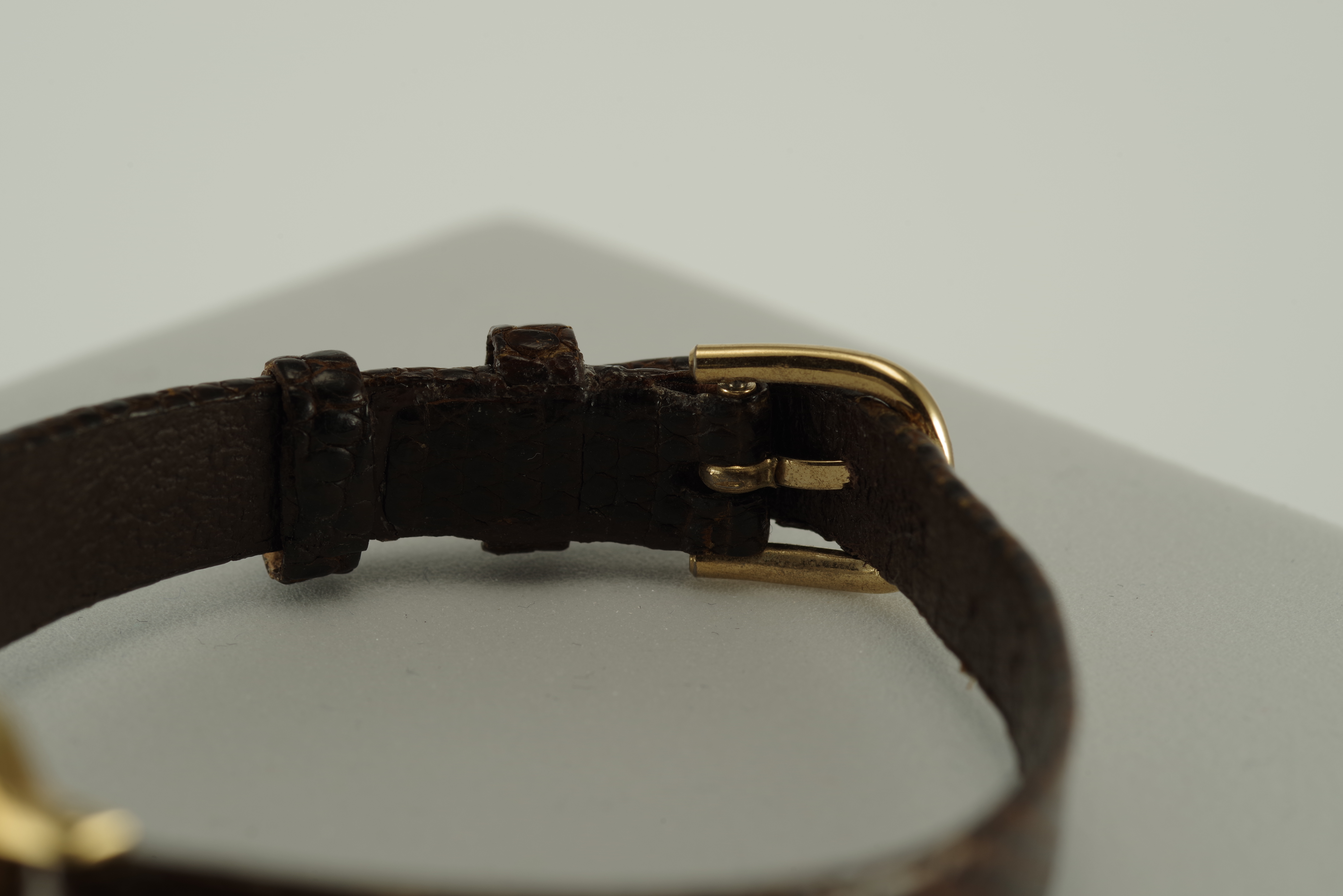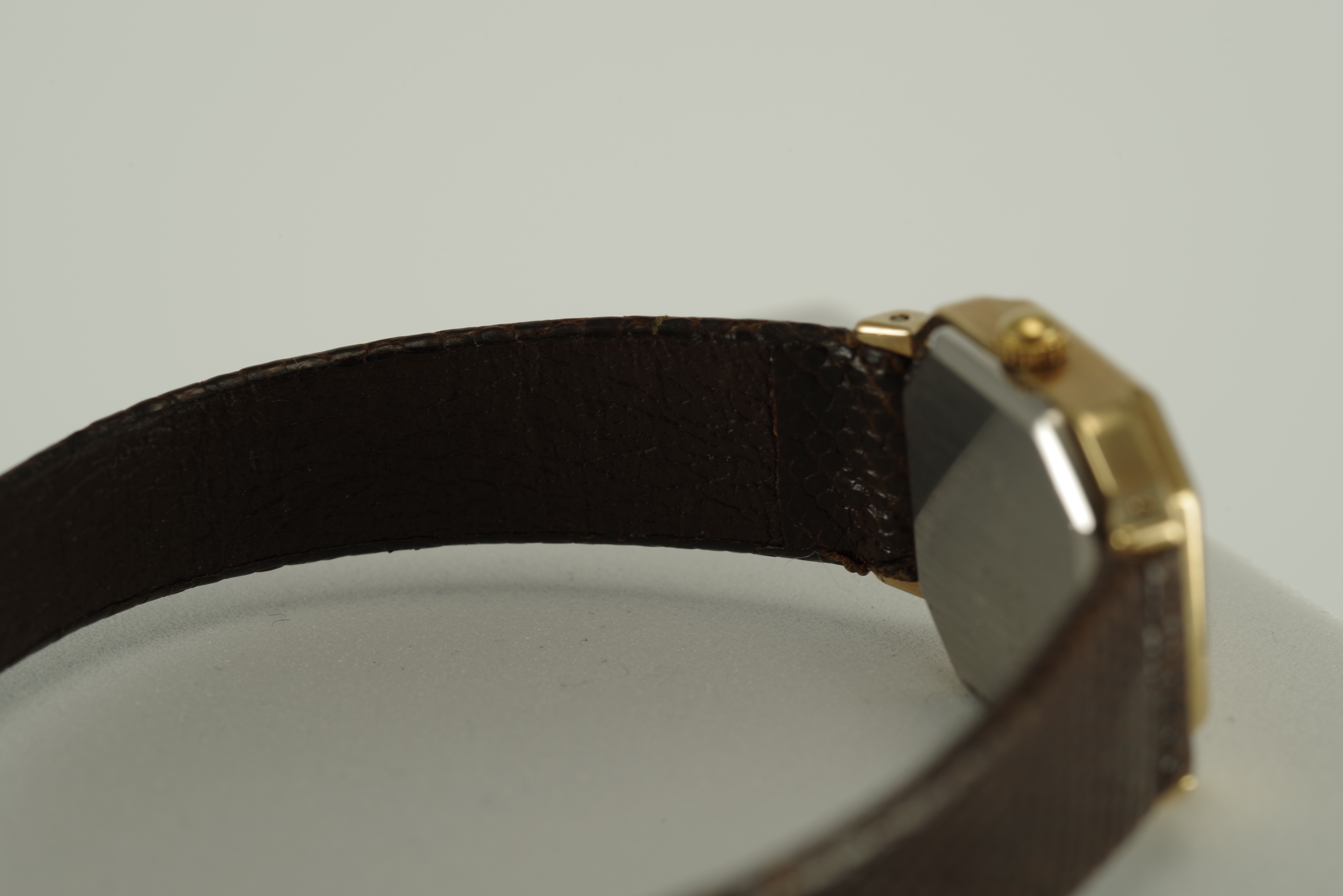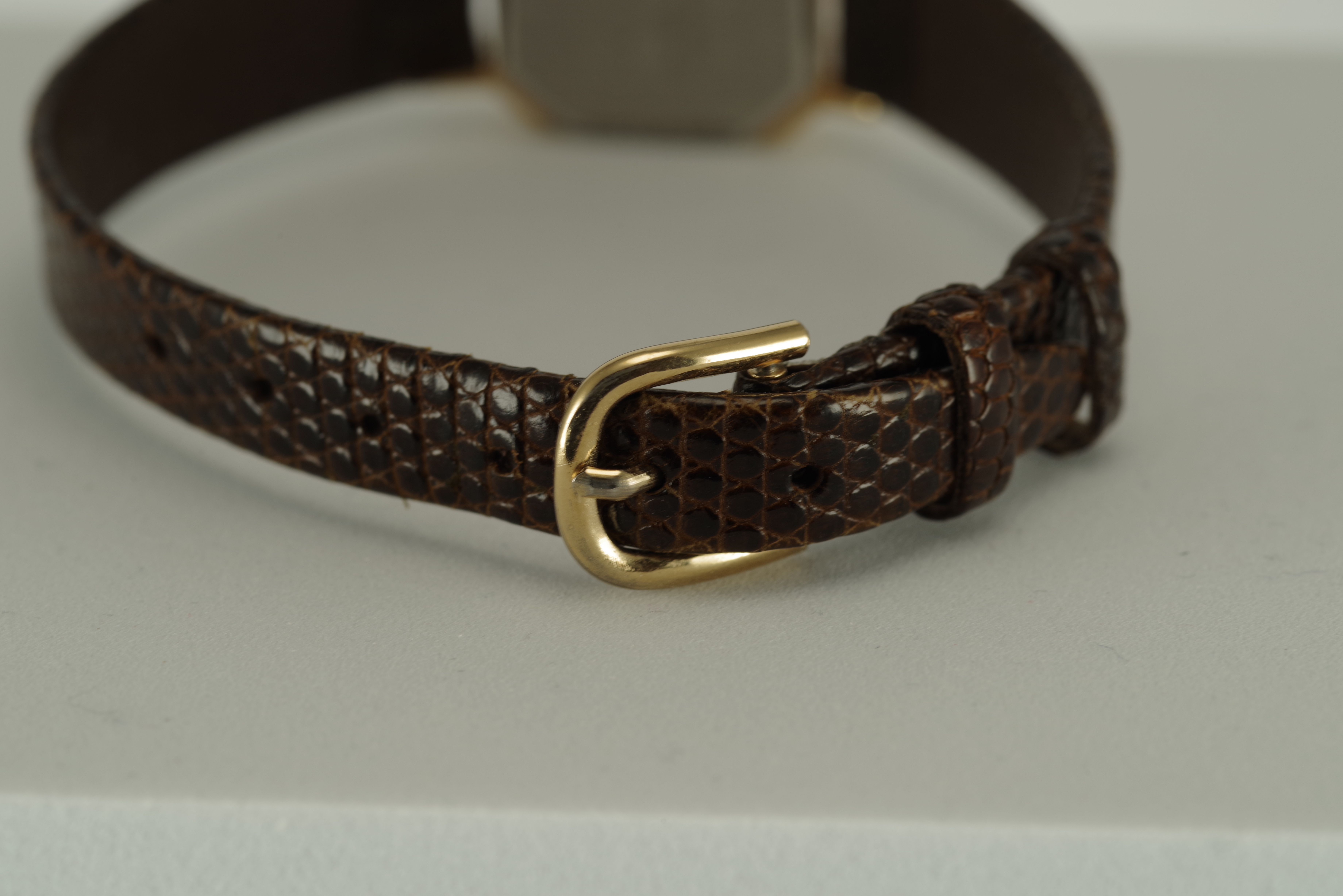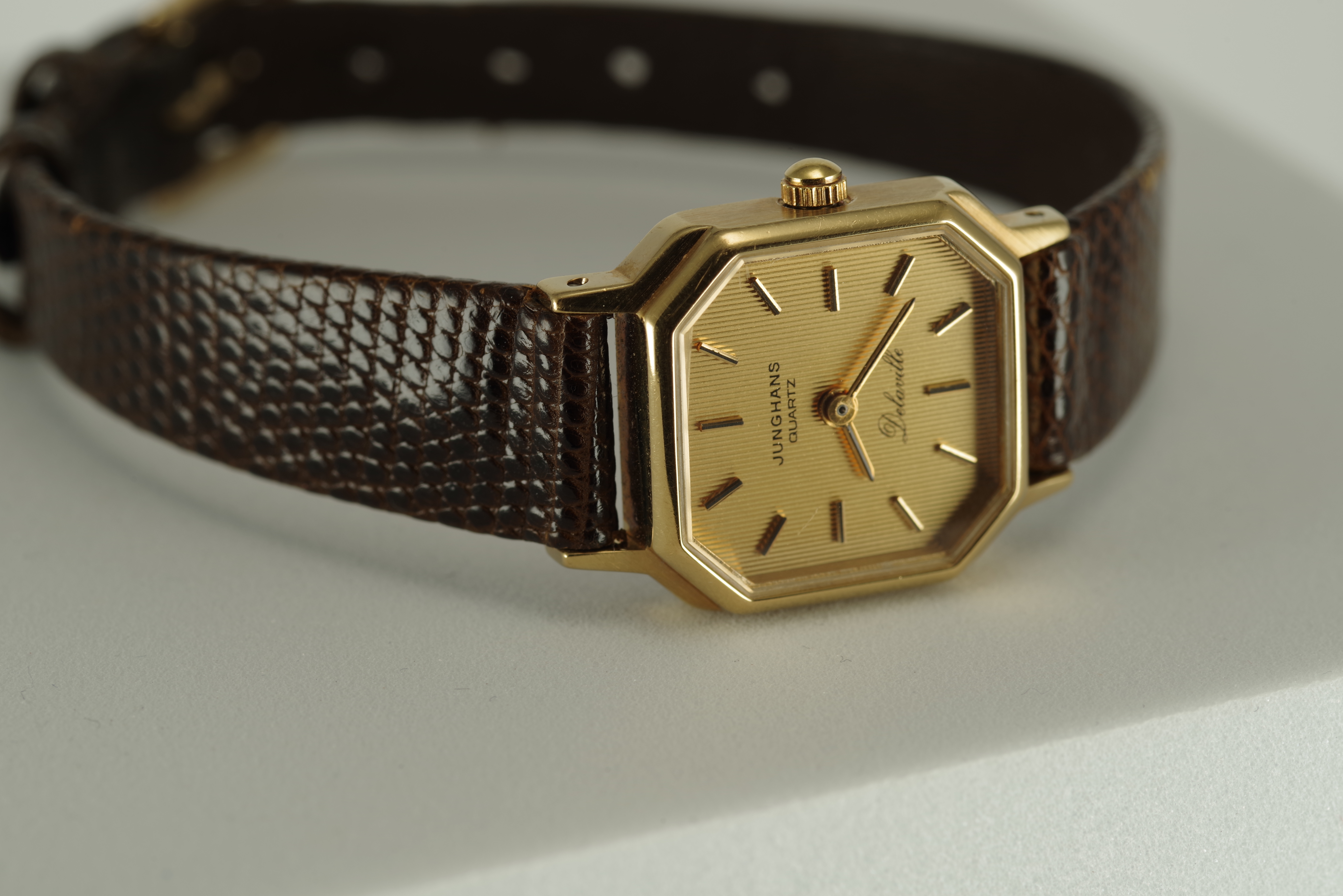 Damen Junghans Vintage Quarz Armbanduhr goldfarbenes Gehäuse braunes Armband