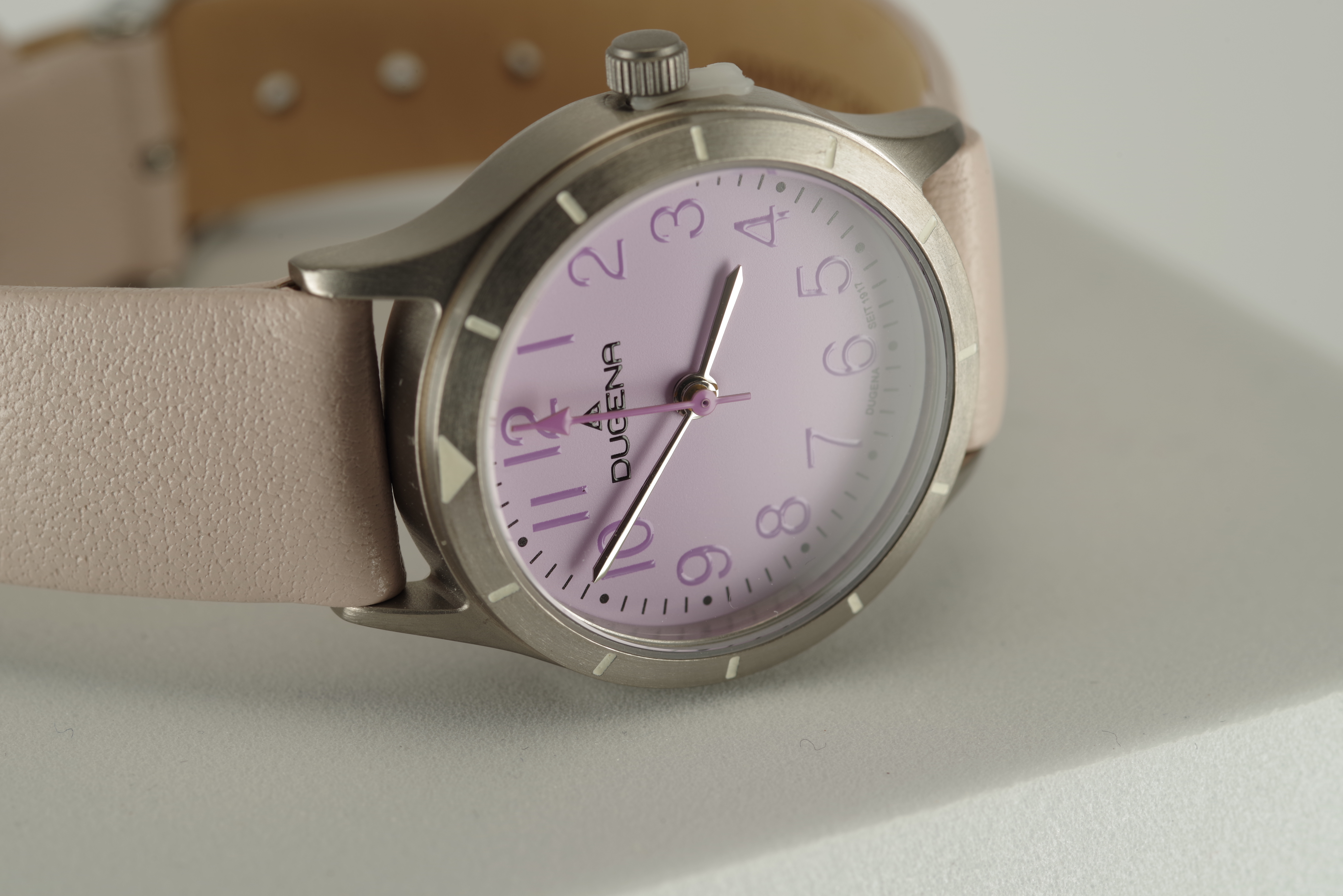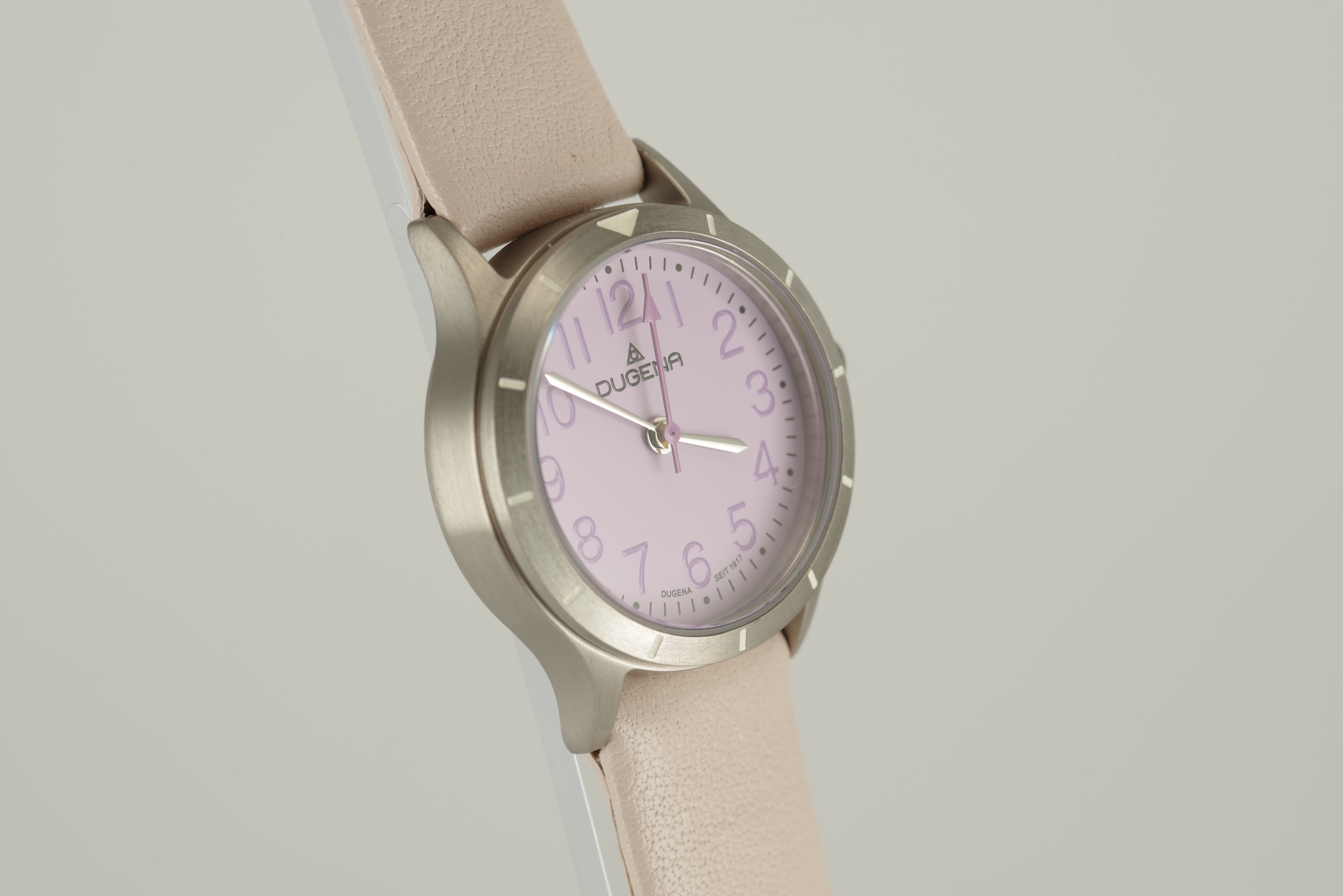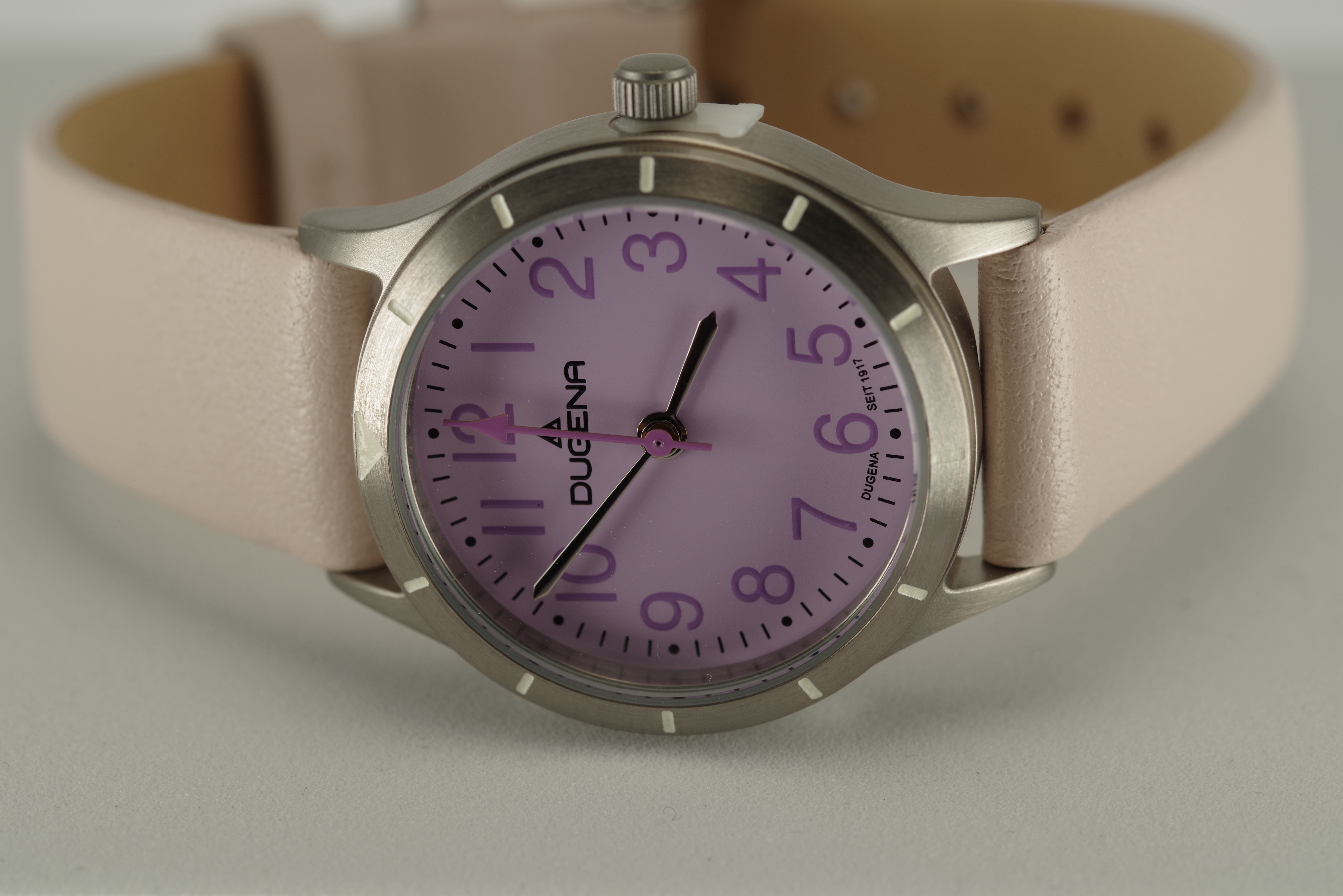Diese Dugena Armbanduhr wurde speziell hinsichtlich Stil, Komfort und Alltagstauglichkeit entwickelt. Mit ihrem frischen Lila Zifferblatt ist sie nicht nur ein echter Hingucker, sondern überzeugt auch durch ihre hochwertige Verarbeitung mit einem Gehäuse aus Titan, einem Mineralglas sowie dem beigen, weichem und schmeichelndem Rimini Leder Armband aus Kalbsleder.