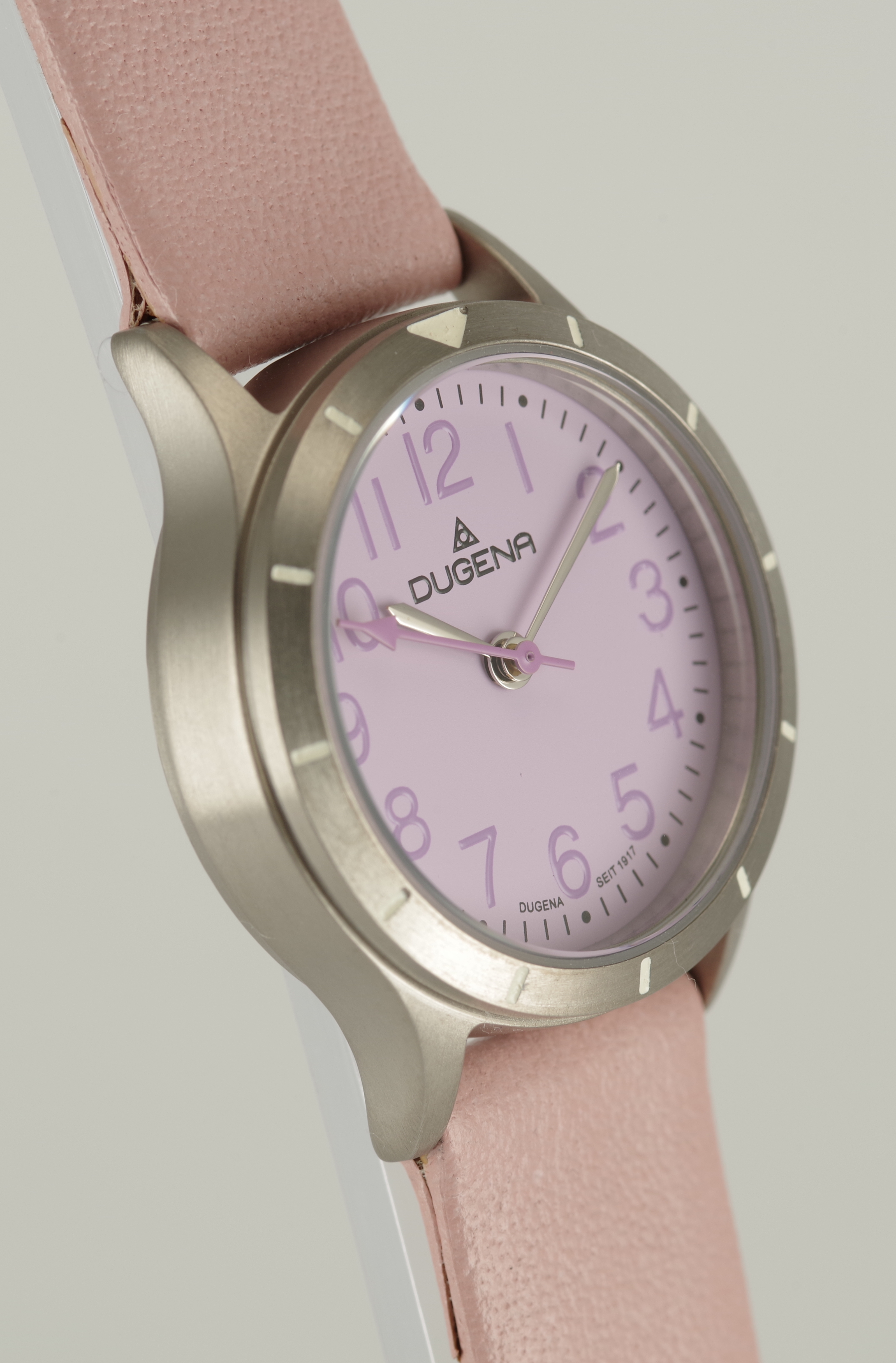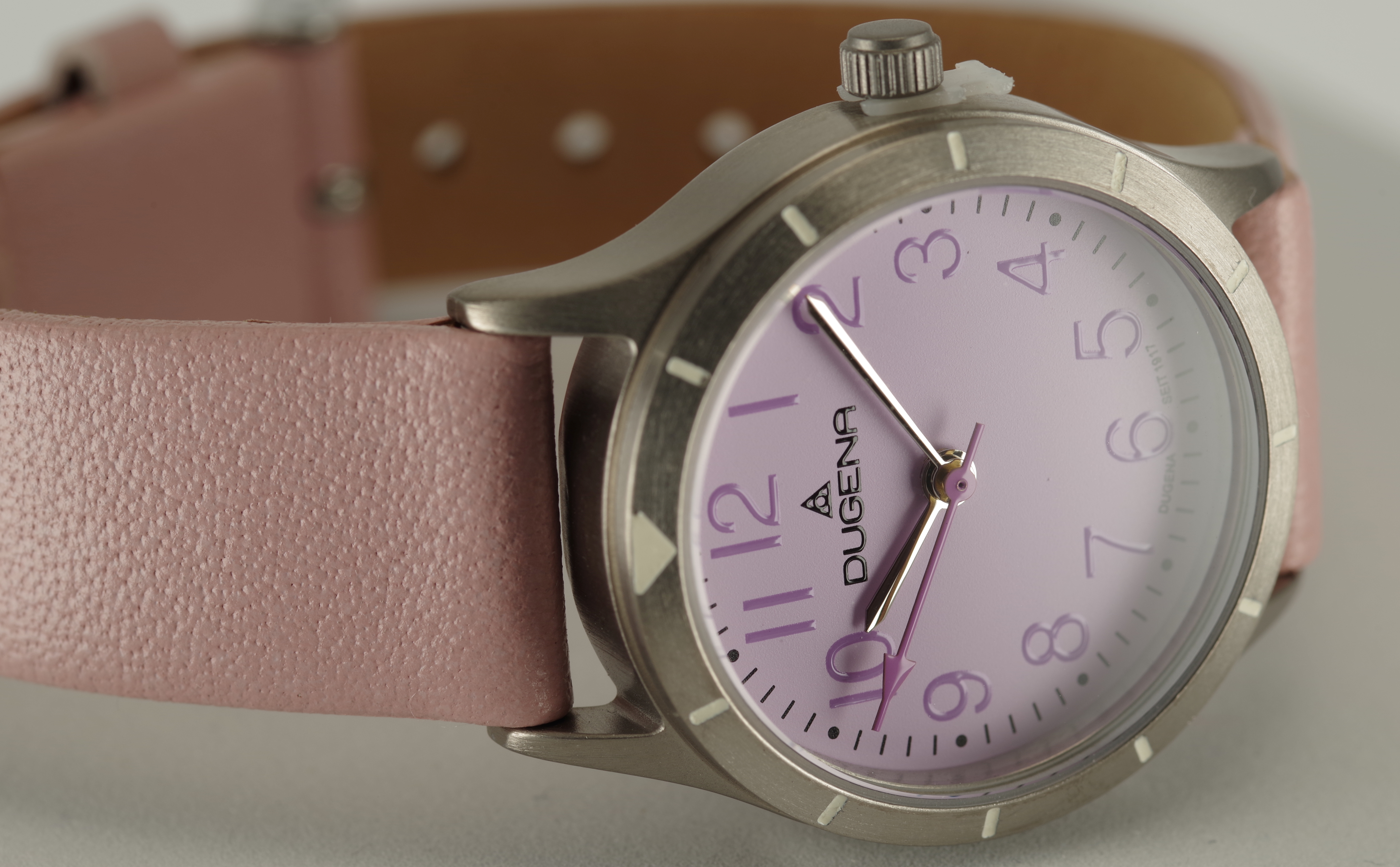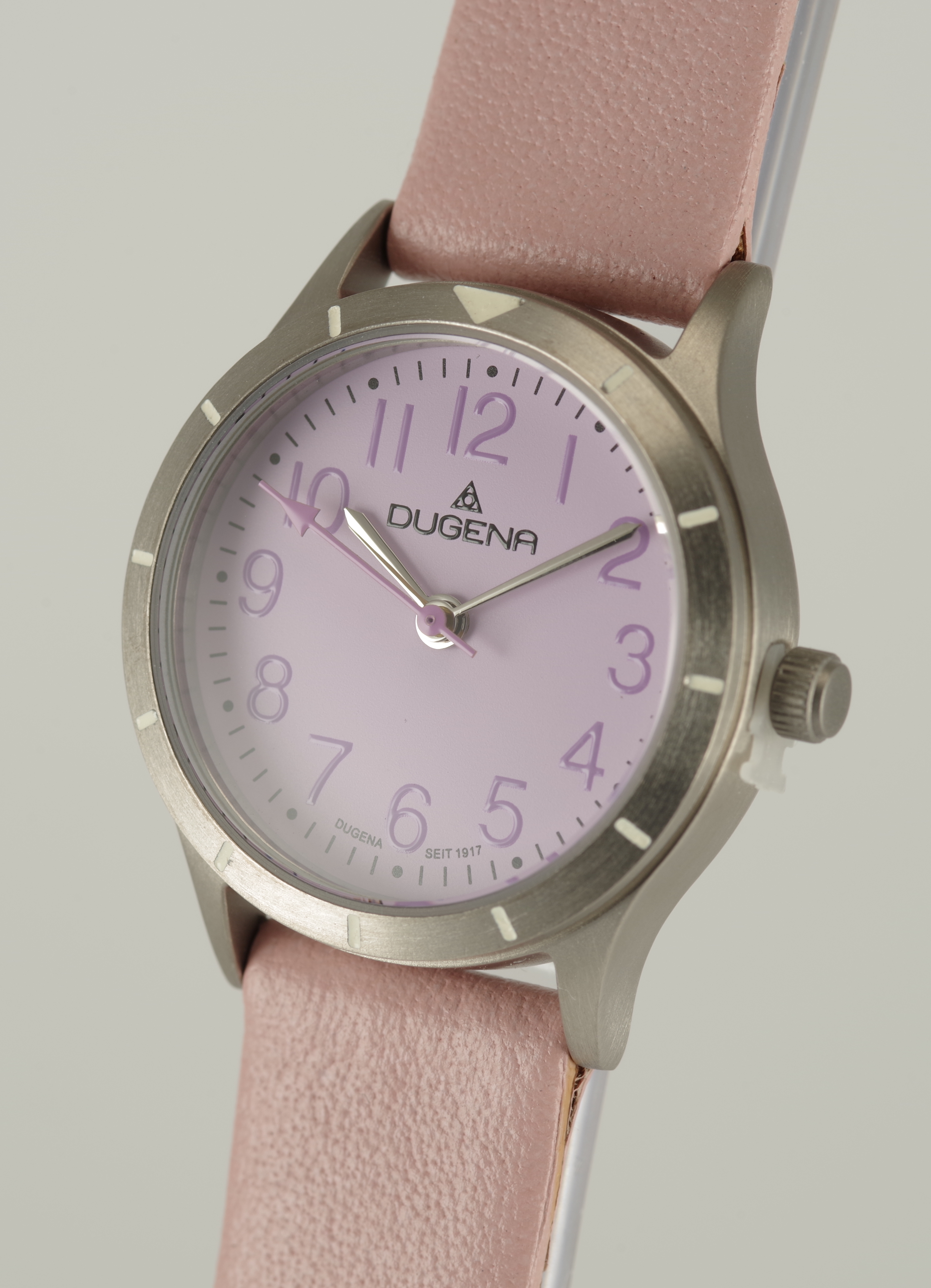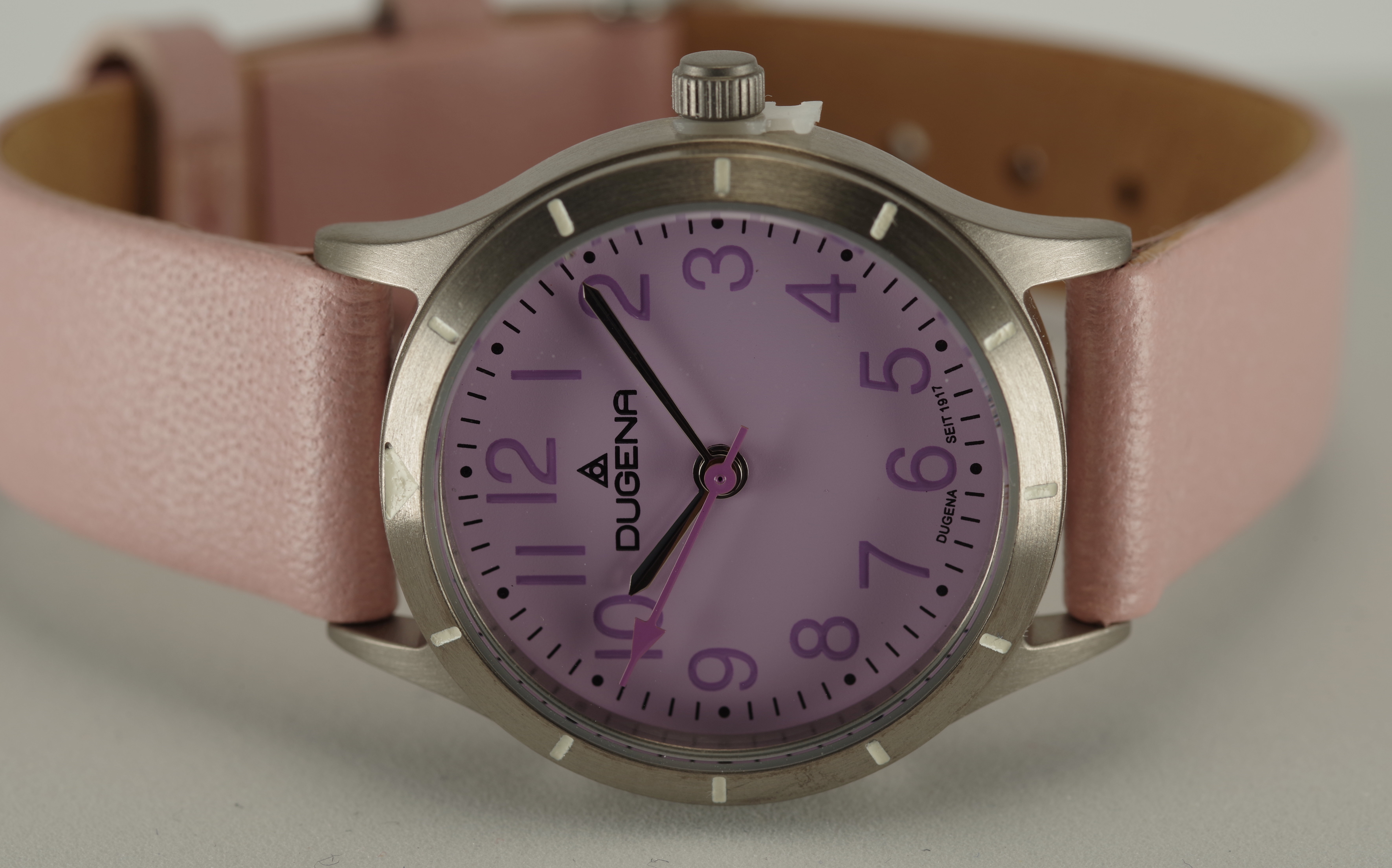 Produktinformationen "Feminine Dugena Armbanduhr Quartz Titan Mineralglas Kalbsleder Lila Rosa"