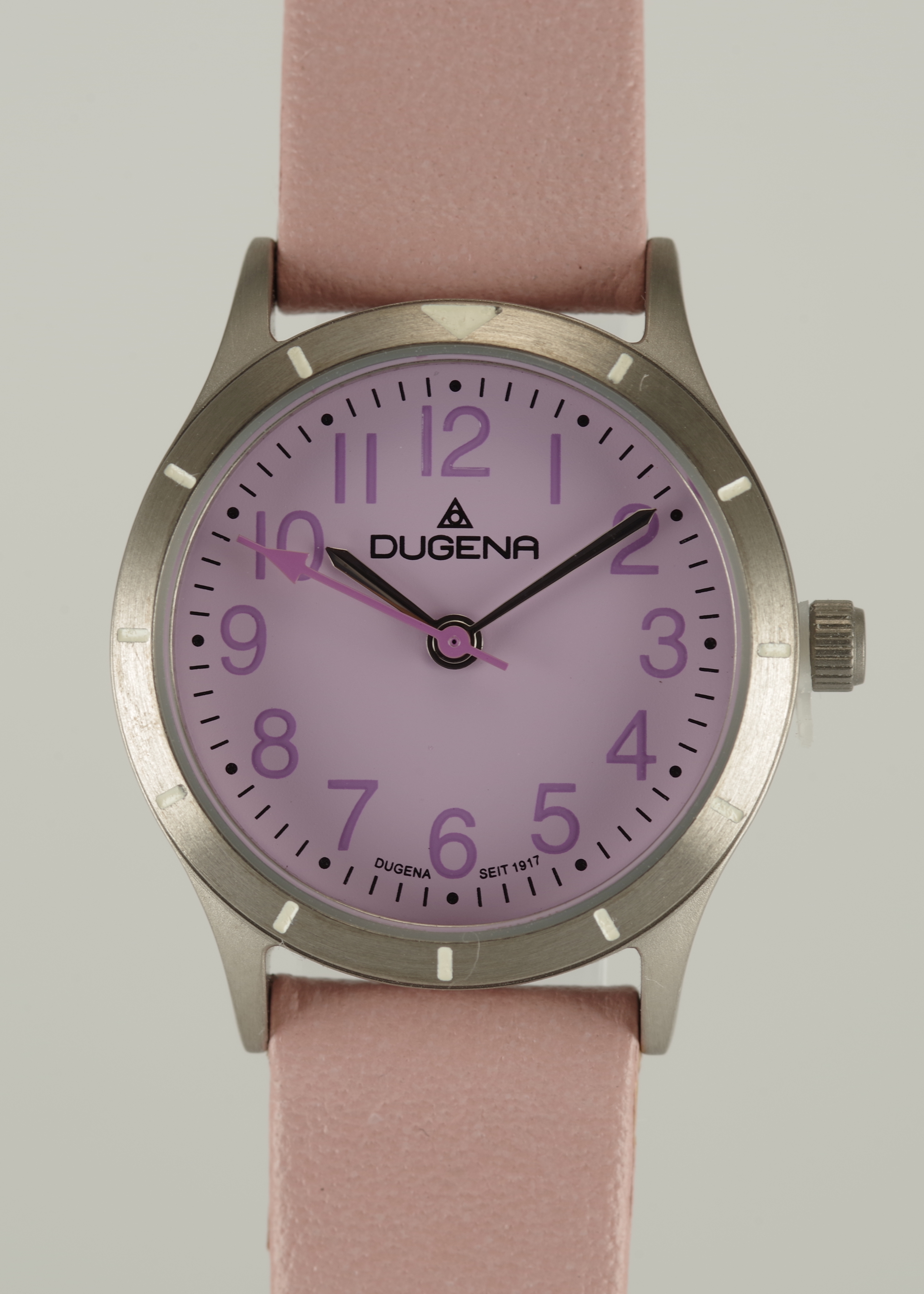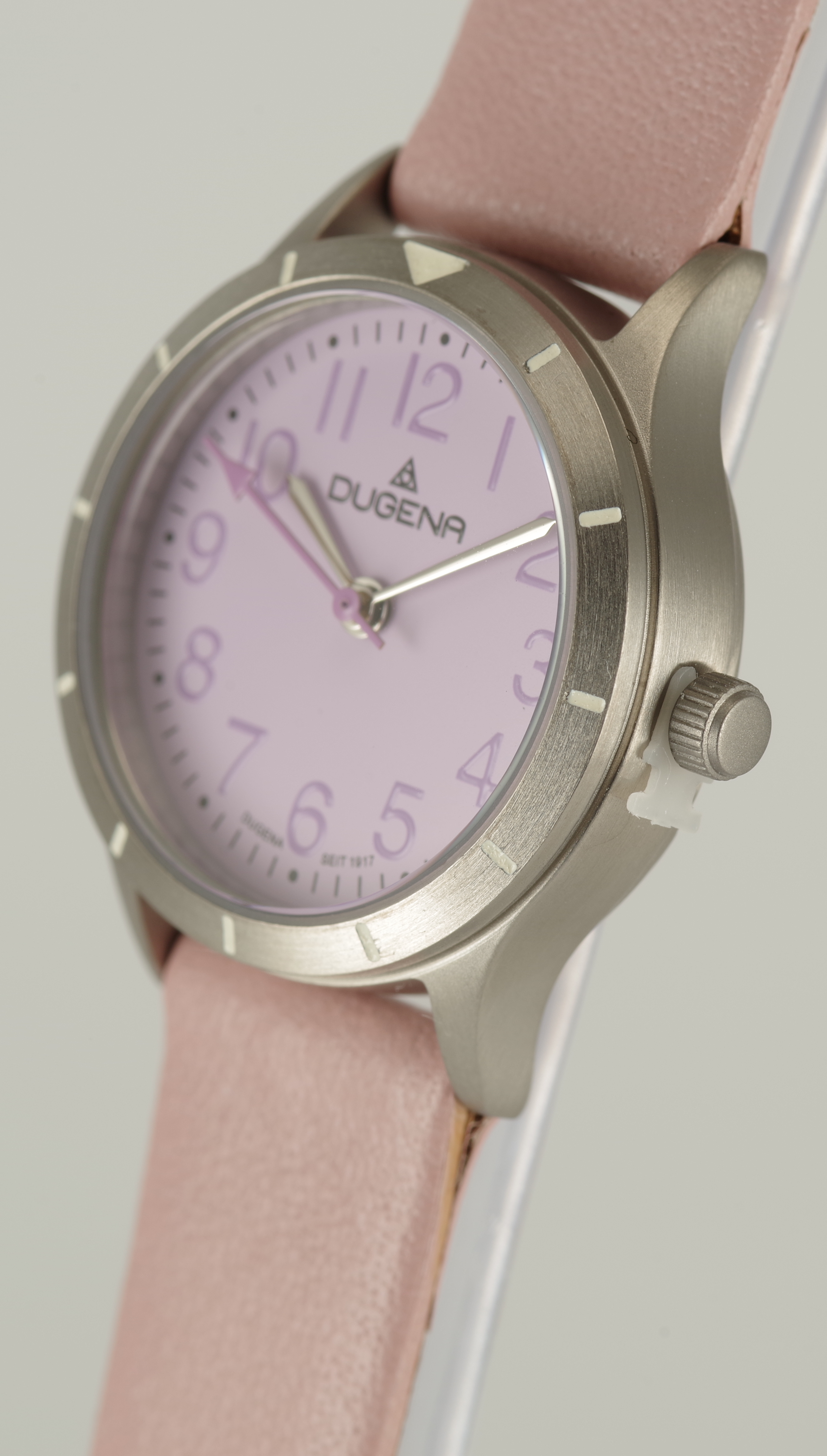 Feminine Dugena Armbanduhr Quartz Titan Mineralglas Kalbsleder Lila Rosa