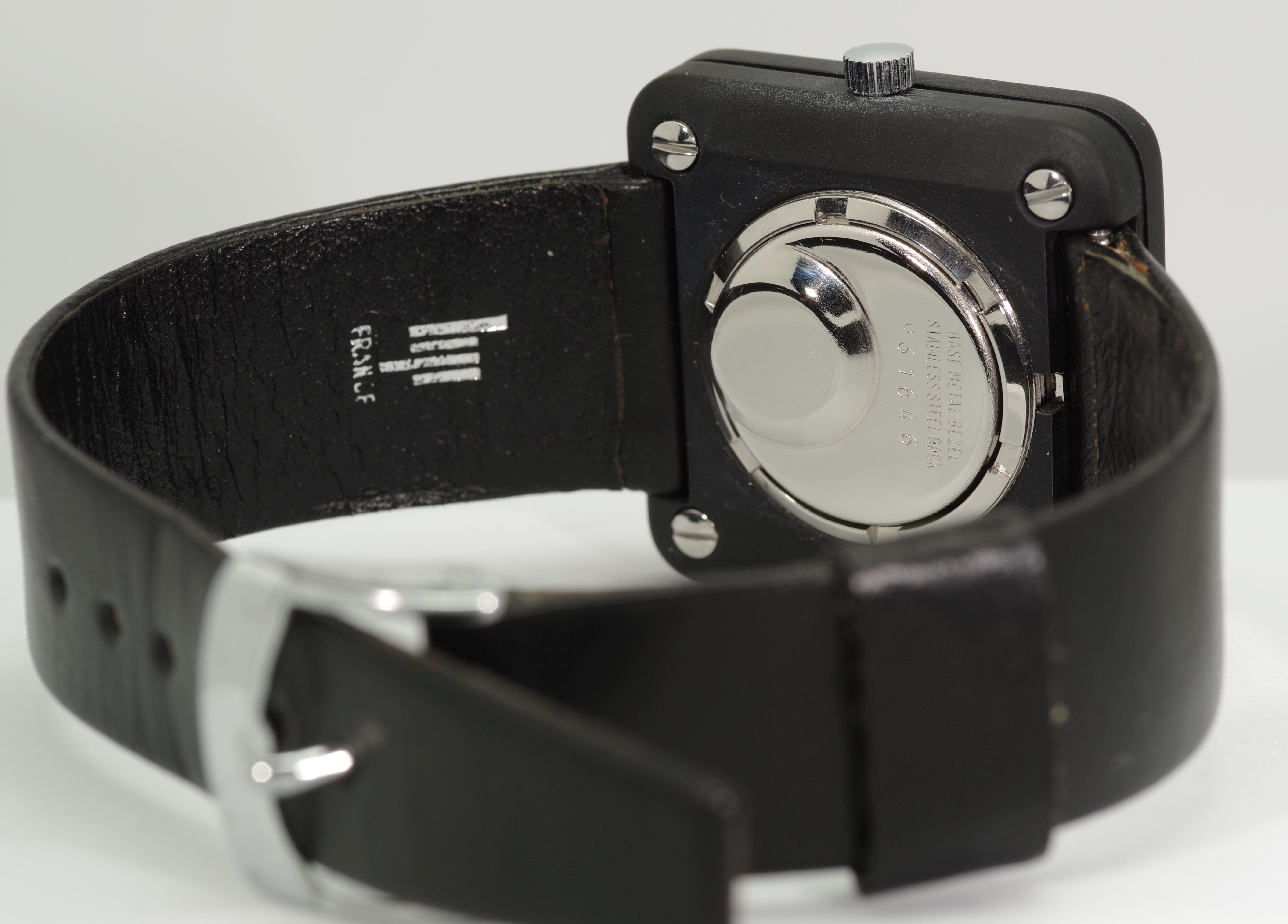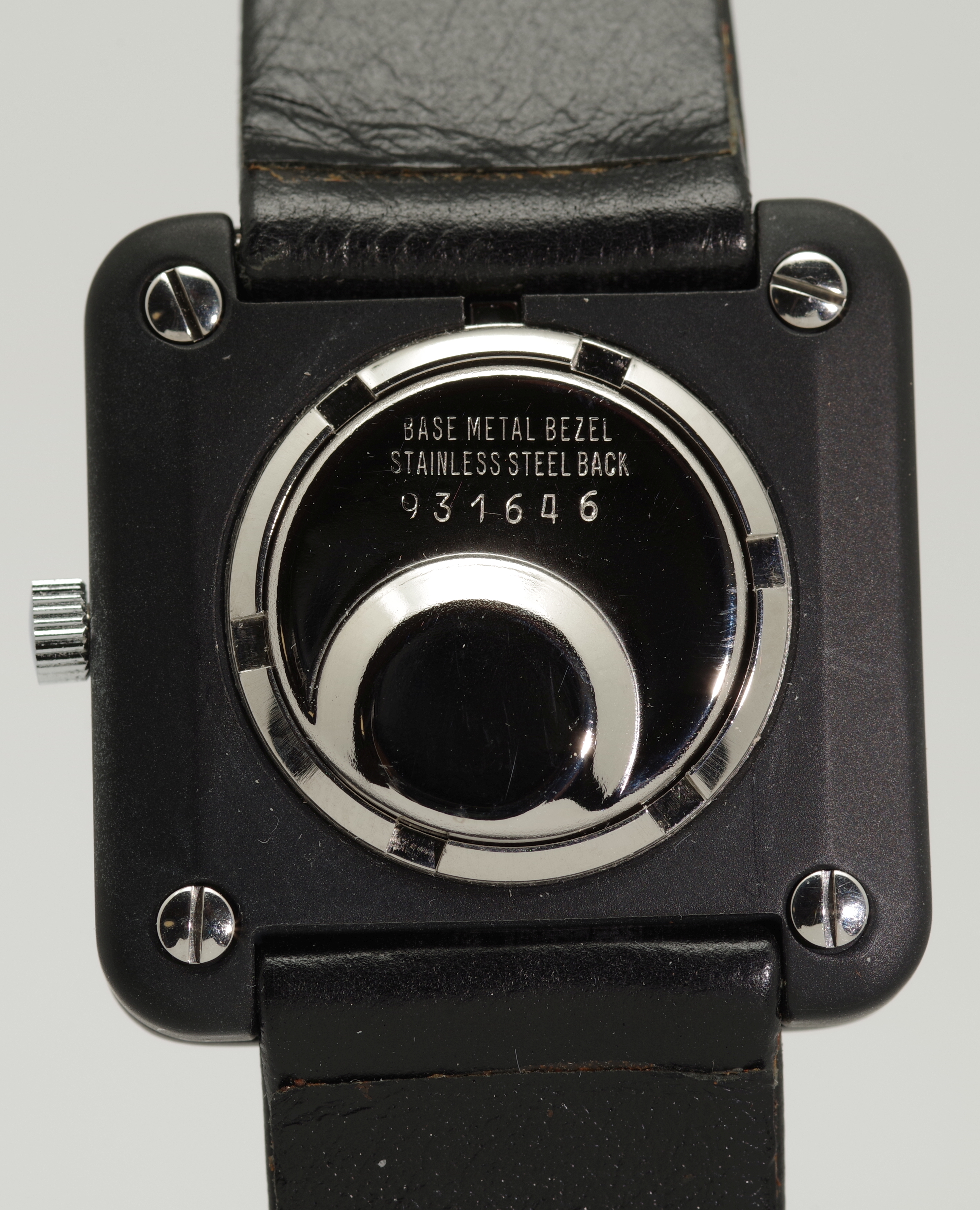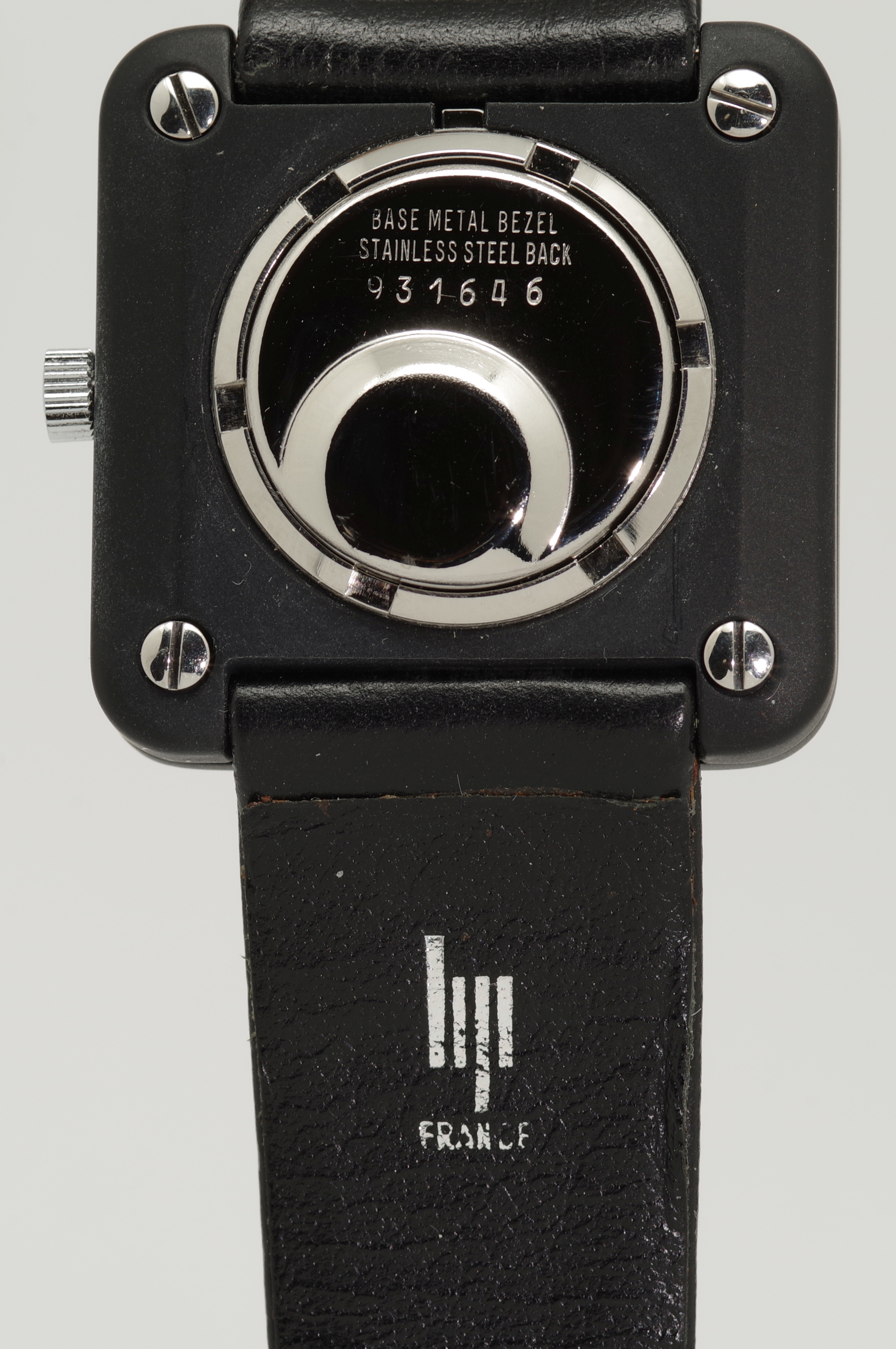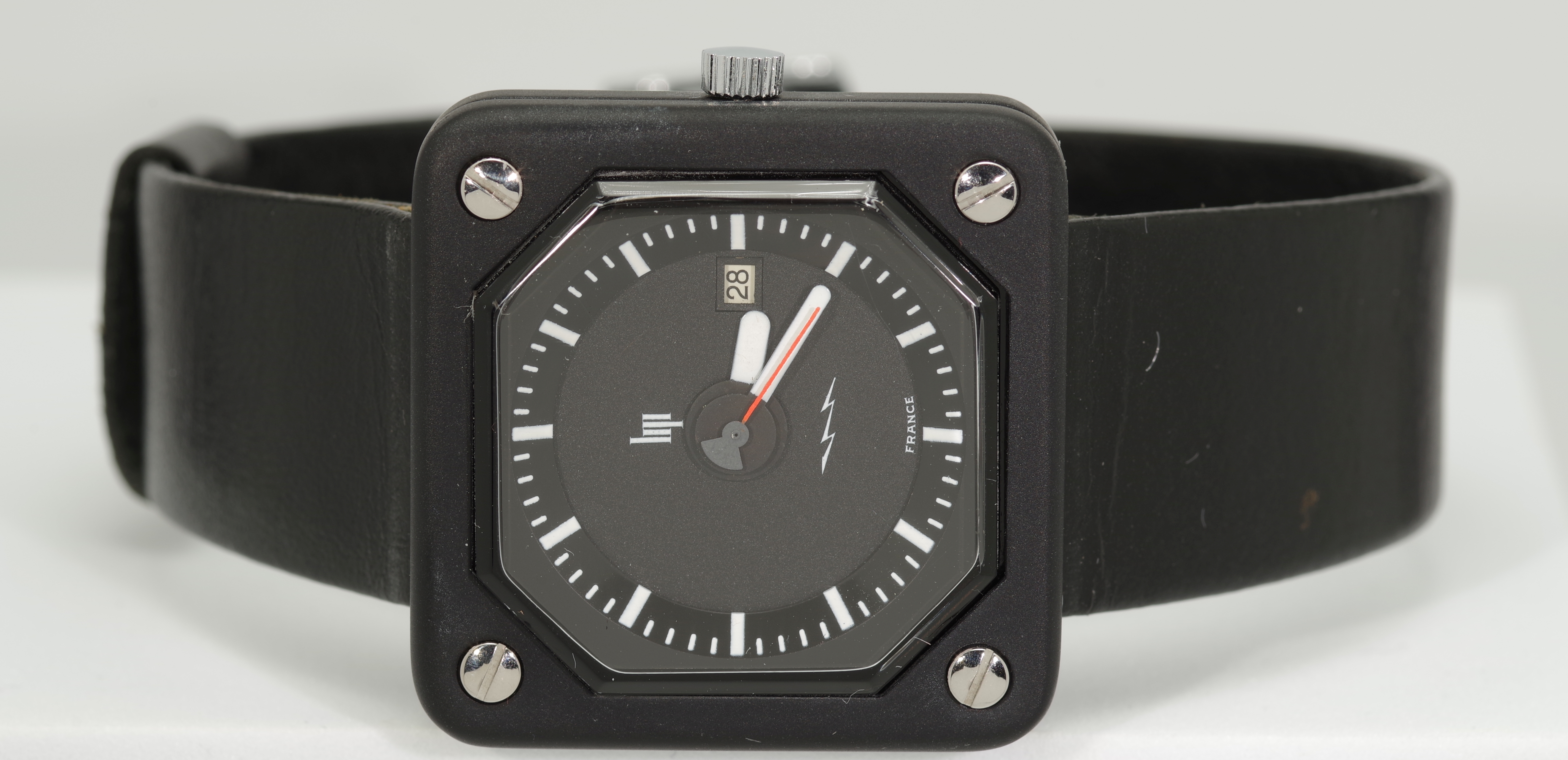 Die Abmaße der Uhr sind 32 x 32 mm, der Bandanstoß hat eine Weite von 20 mm. Das zweiteilige, originale und zu dieser Uhr gehörende LIP signierte schwarze Armband hat eine Länge von 11,5 cm und 7,0 cm und erscheint neuwertig und in einem sehr gut tragbaren Zustand zu sein.
