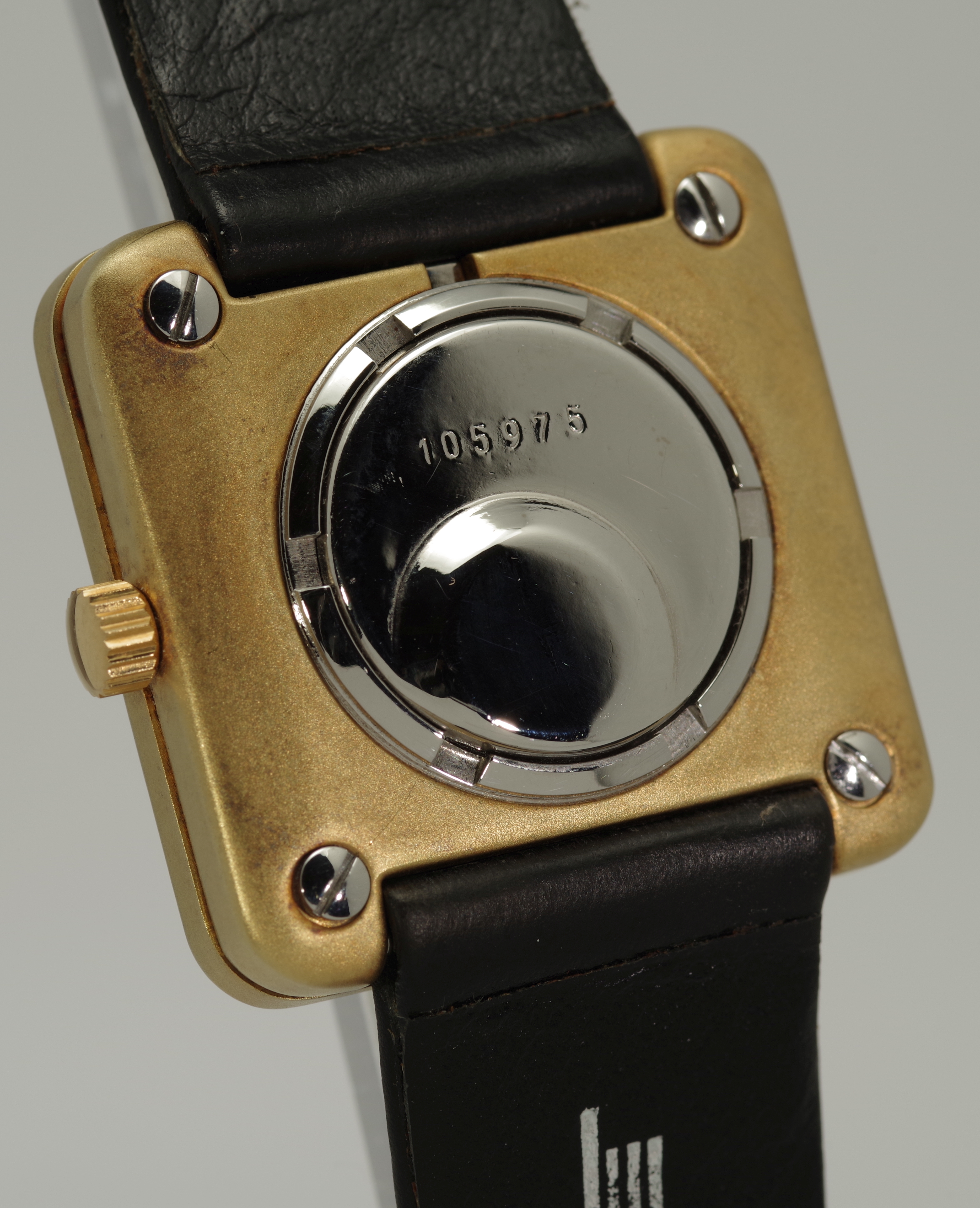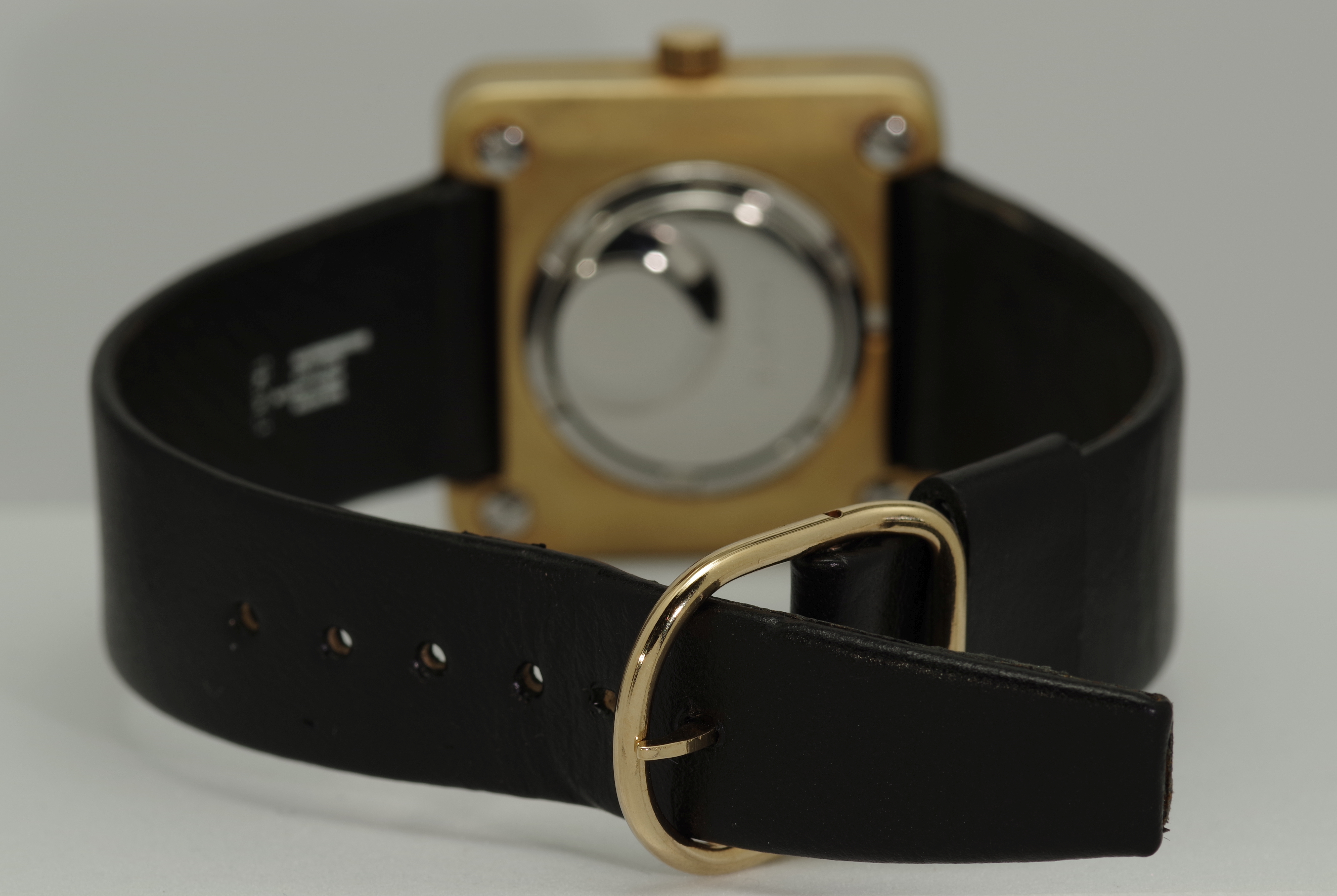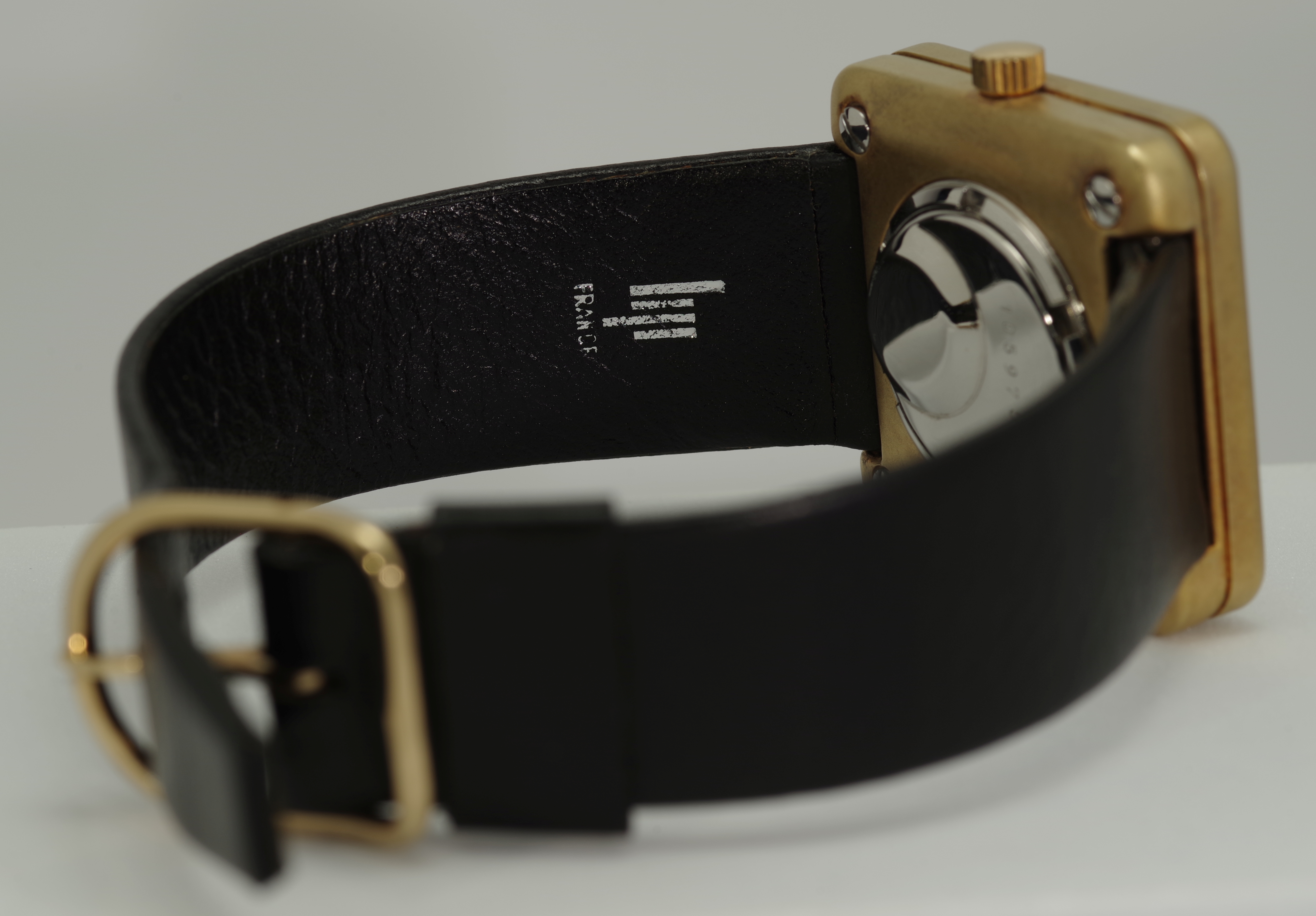 Insgesamt besteht diese Reihe aus vier Modellen. Dieses Modell mit der Referenz-Nummer 43850 ist die Variante mit einem schwarz/weißem Zifferblatt in einem matt vergoldeten Gehäuse und dem weißen Sekundenzeiger.
