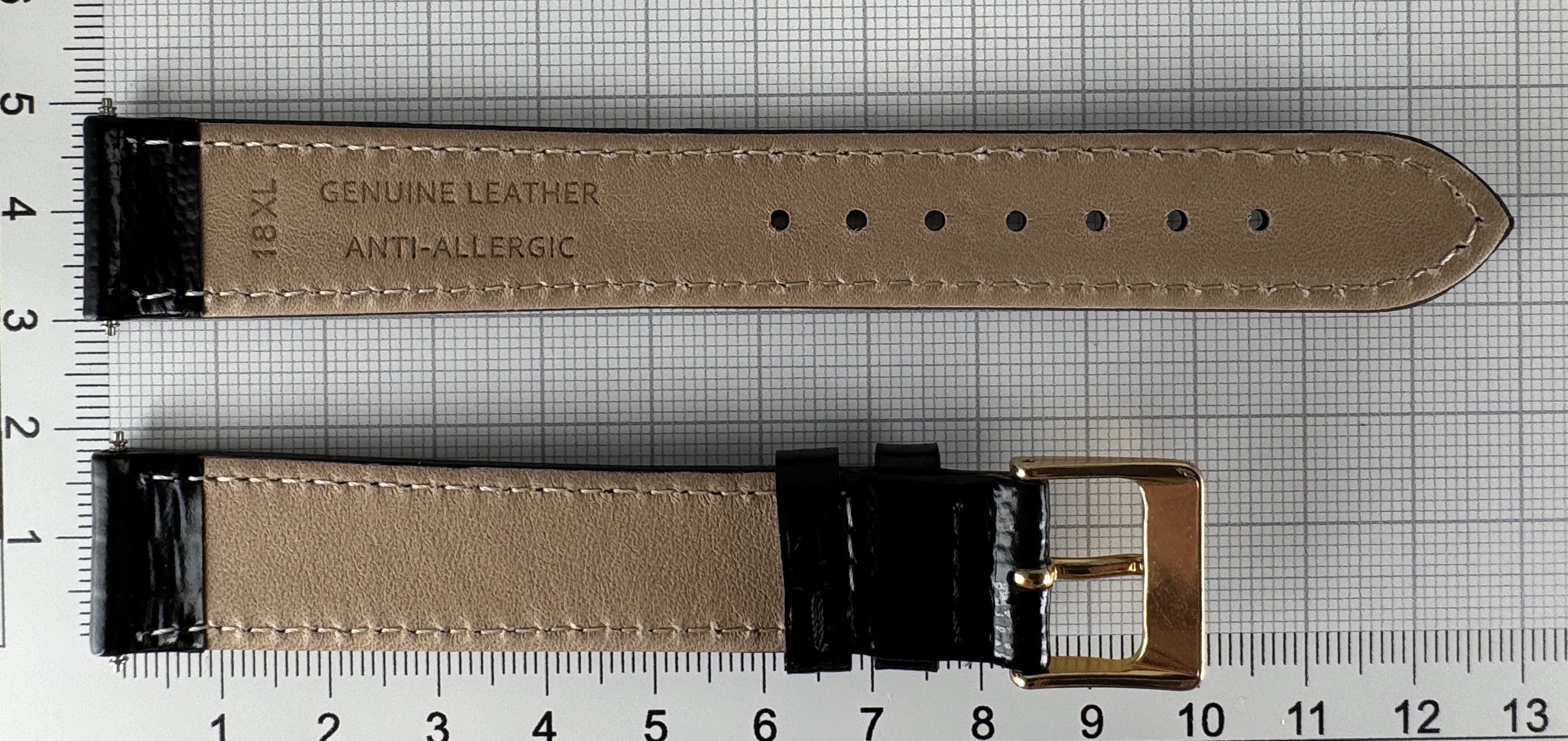 Eigenschaften "Uhrenarmband XL Kalbsleder 18mm BK/GD Struktur Eidechse antiallergisch"