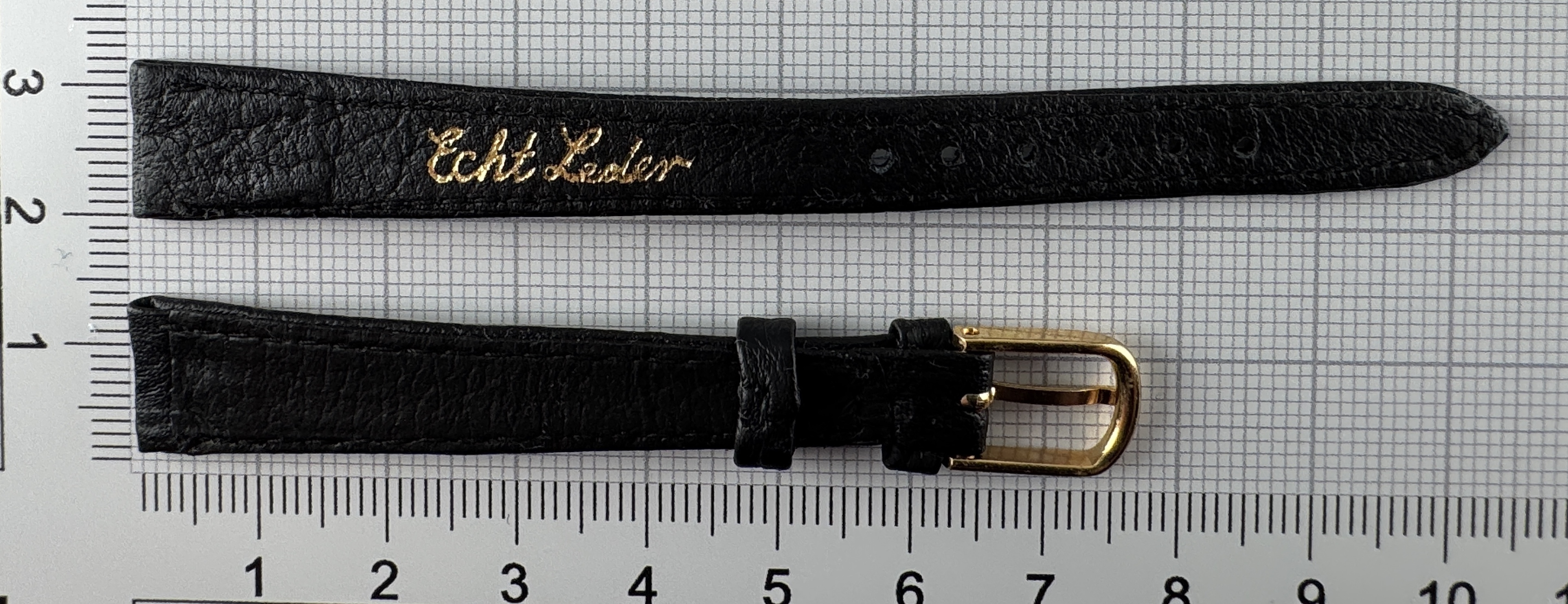 Vintage Uhrenarmband 12 mm Echtleder, Schwarz, genäht