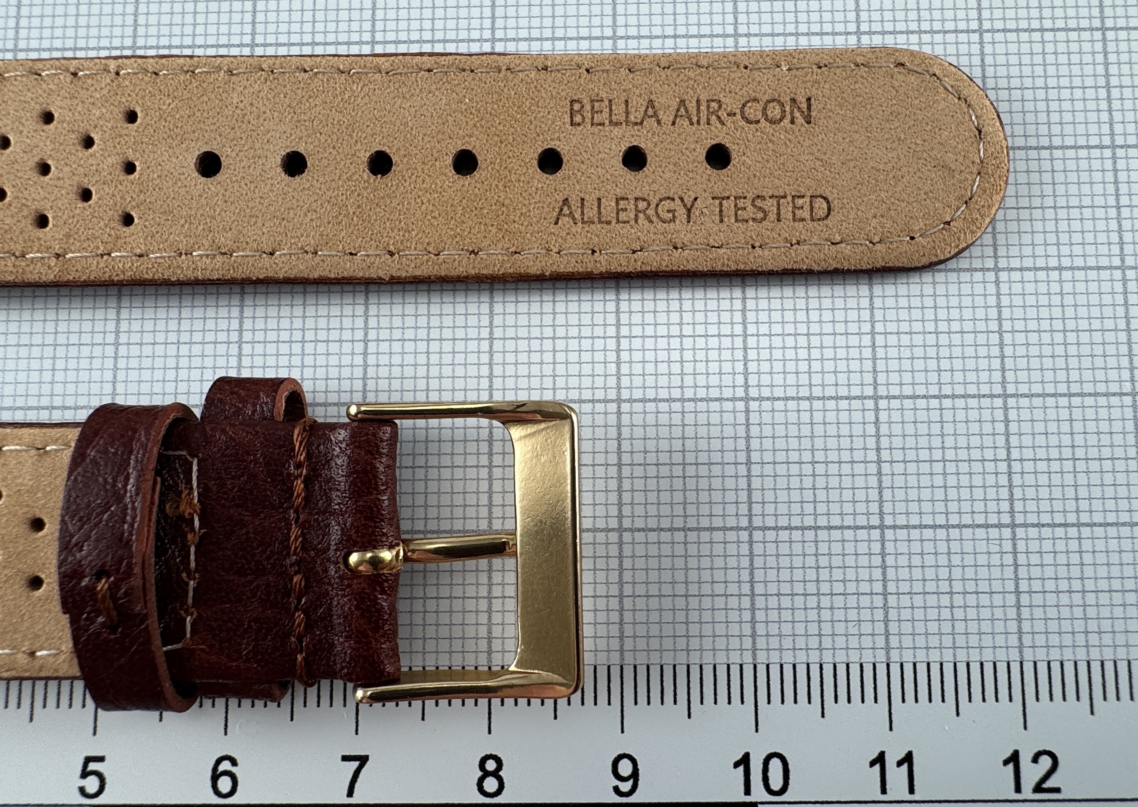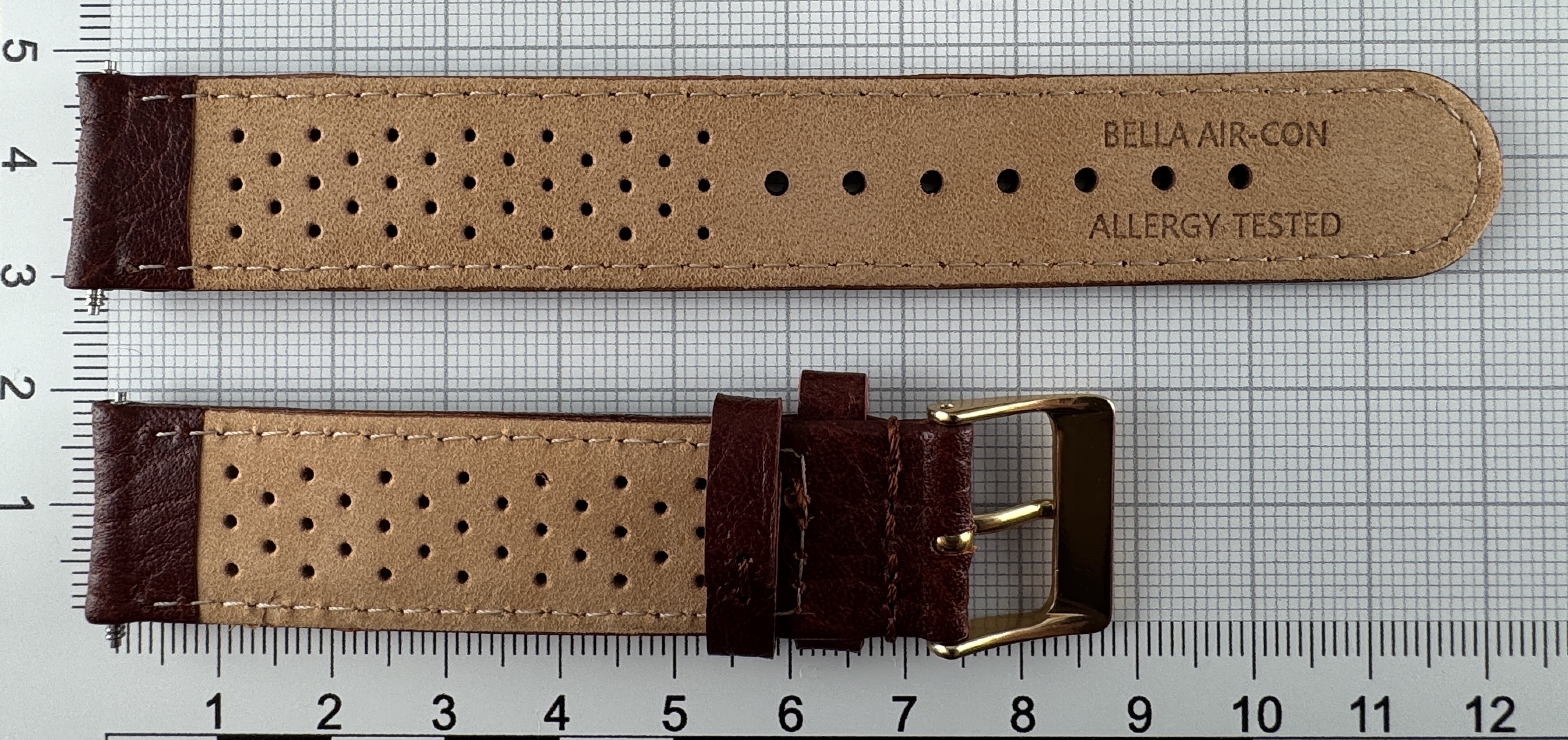 Eigenschaften "Uhrenarmband 18 mm braunes belüftetes Kalbsleder goldfarbene Schnalle"