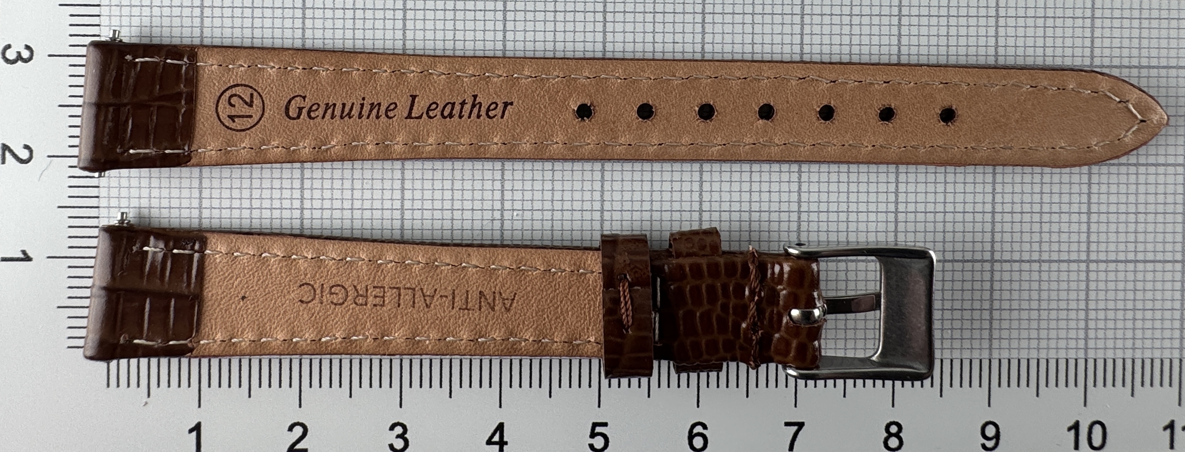 Eigenschaften "Uhrenarmband Leder 12mm Braun mit Eidechsenstruktur - Kalbsleder 10mm Silber"