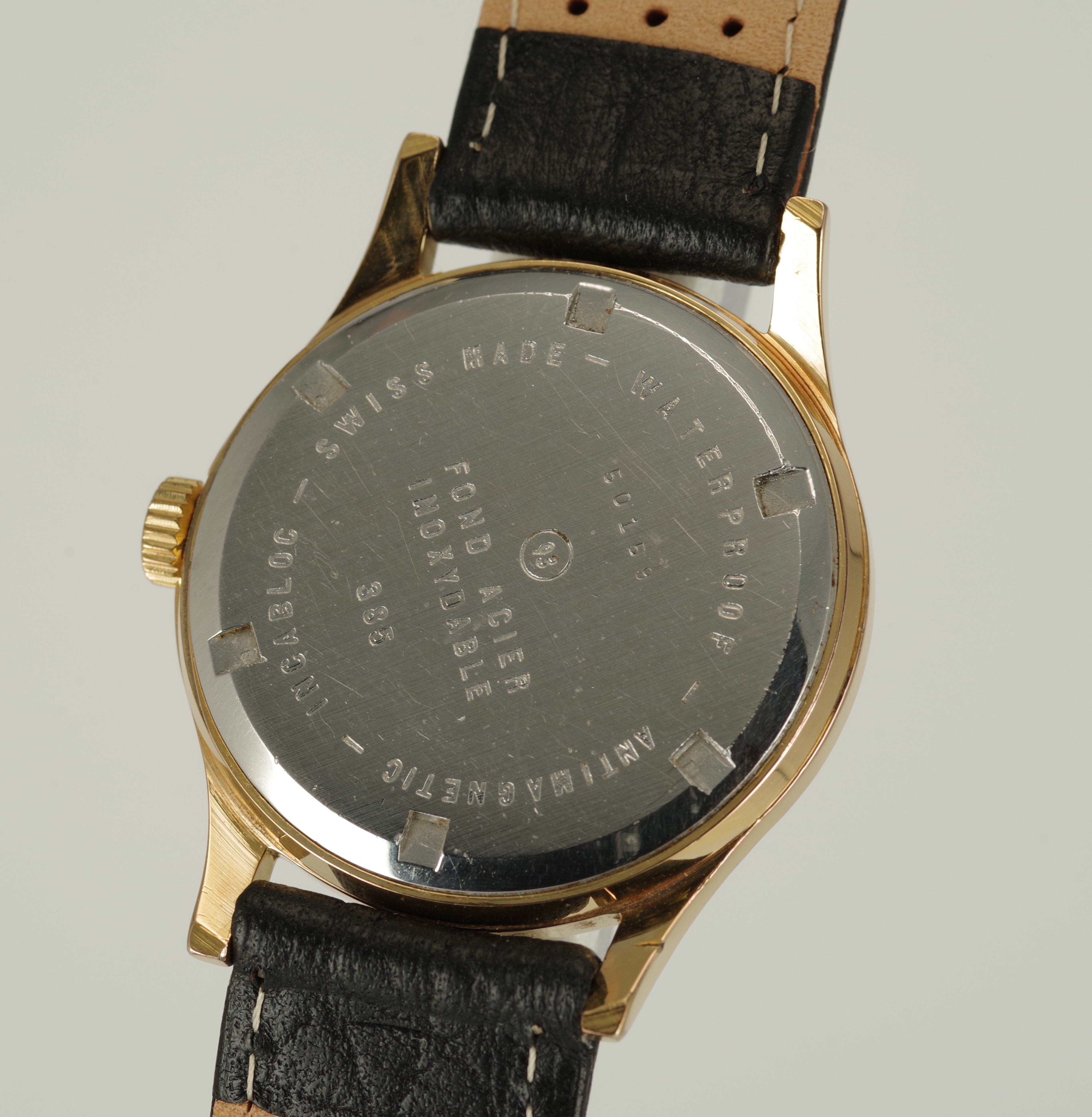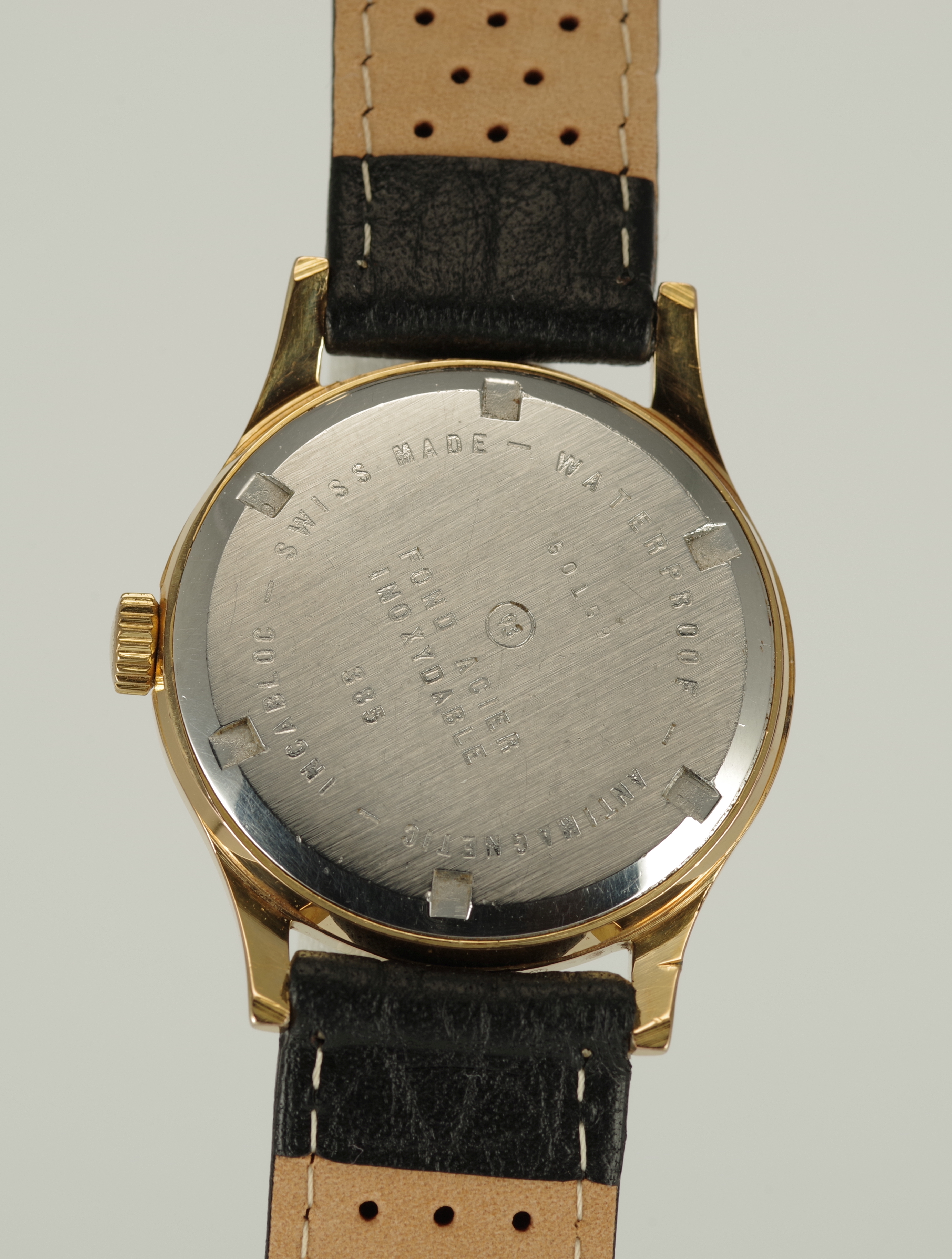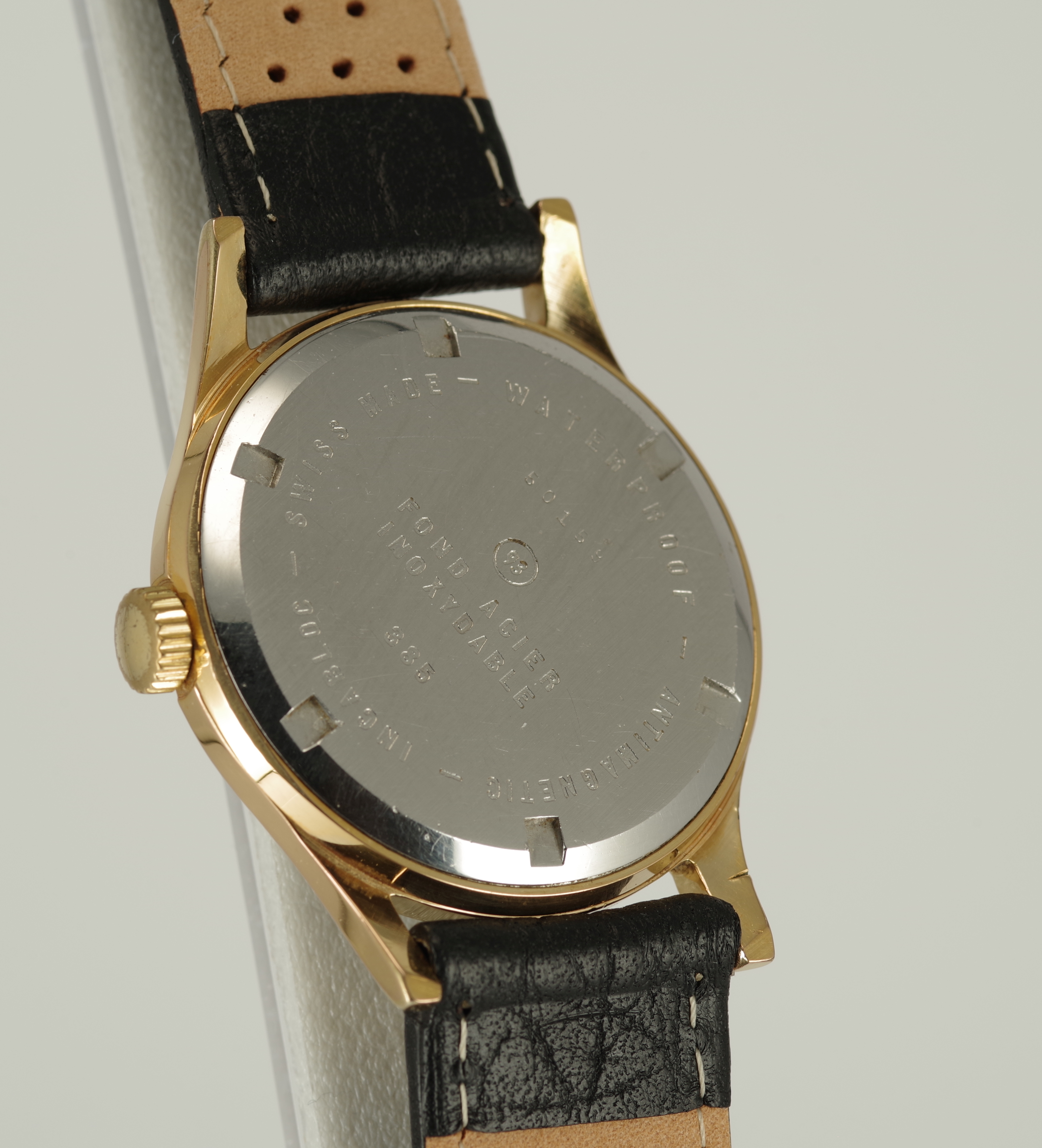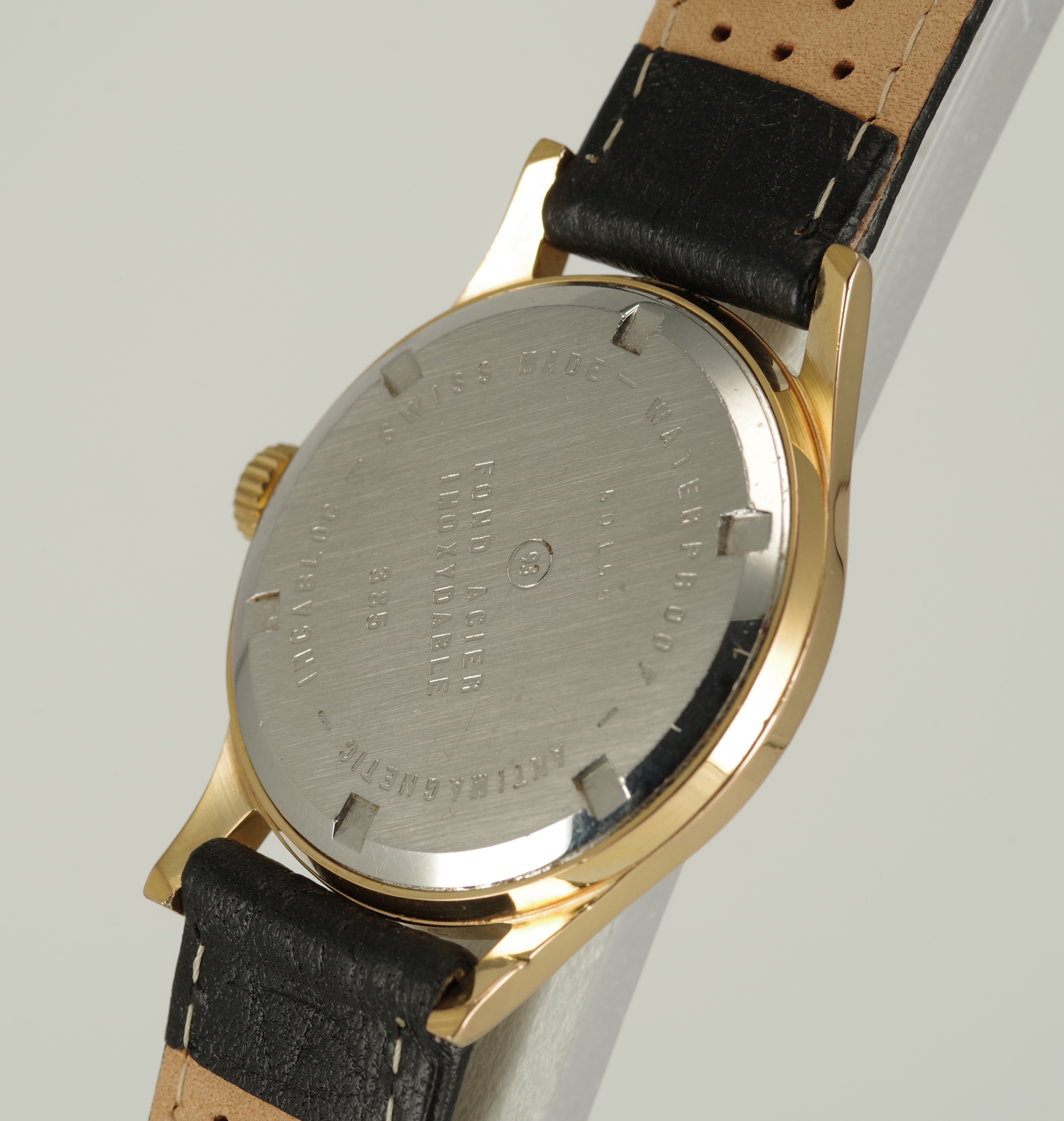 Rückendeckel: Edelstahl, geprägte Nummern 50159, 93 in Kreis sowie 385, Fond Acier - Inoxydable - Waterproof - Antimagnetic - Incabloc - Swiss Made