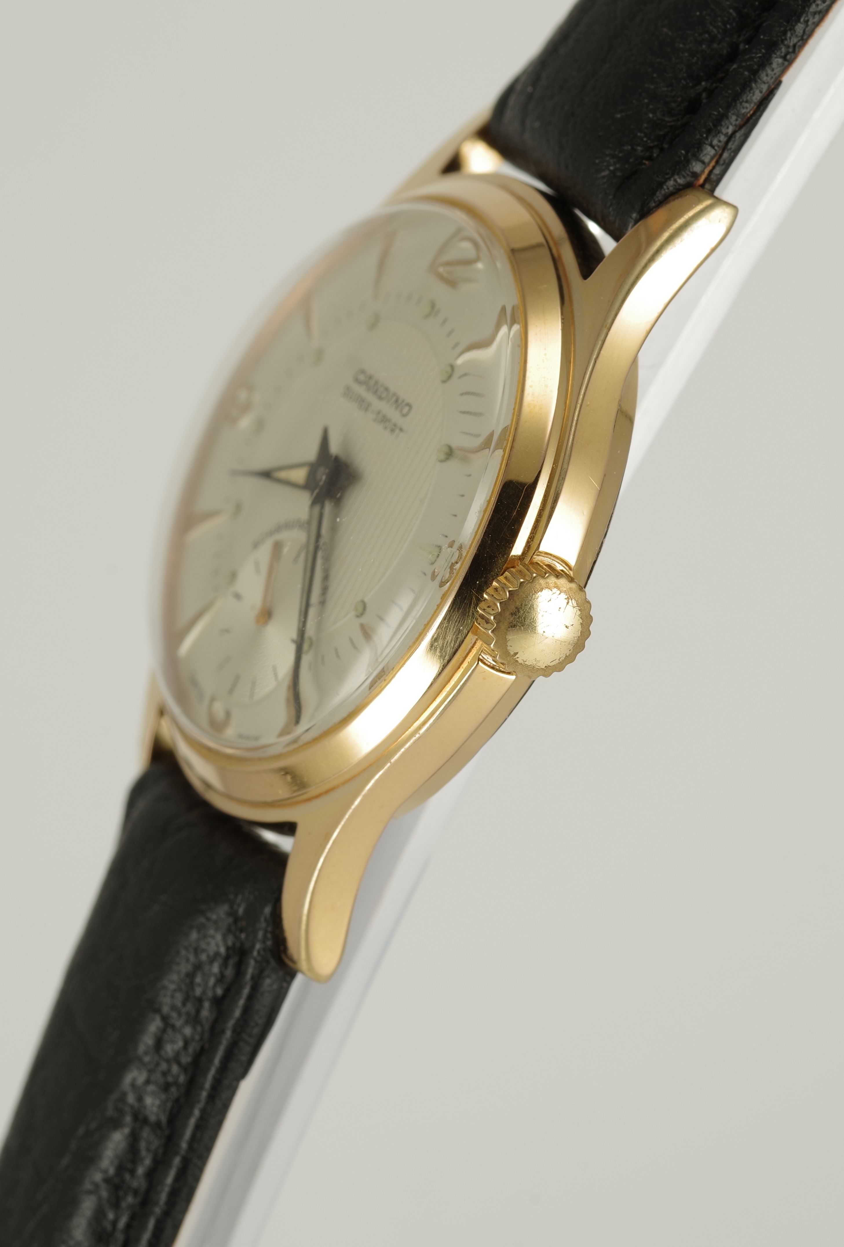 Erleben Sie mit dieser wunderschönen Candino Super Sport ein authentisches Stück Uhrengeschichte. Diese elegante Herrenuhr stammt aus einer Ära, in der Schweizer Präzision und minimalistisches Design Hand in Hand gingen. Ein begehrtes Sammlerstück der 1960-er Jahre mit originalem Werk und ausgezeichneter Ganggenauigkeit.